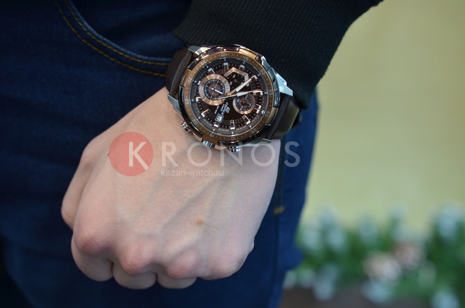 Кварцевый японский механизм Miyota. Точность хода не хуже -10 +15 сек./в месяц. Часы оснащены функцией хронографа, с точностью 1/10с и временем измерения 1ч. Циферблат коричневого цвета с контрастными, позолоченными элементами дизайна. Флюорисцентное напыление на стрелках и дисплее часов позволяет отчетливее видеть каждую цифру. Корпус выполнен из нержавеющей стали с частичным IP покрытием. Ремешок из натуральной кожи коричневого цвета. Минеральное стекло устойчиво к появлению царапин. Водонепроницаемость 100М. В часах можно плавать. Степень водонепроницаемости не является величиной, эквивалентной функциональной рабочей глубине.