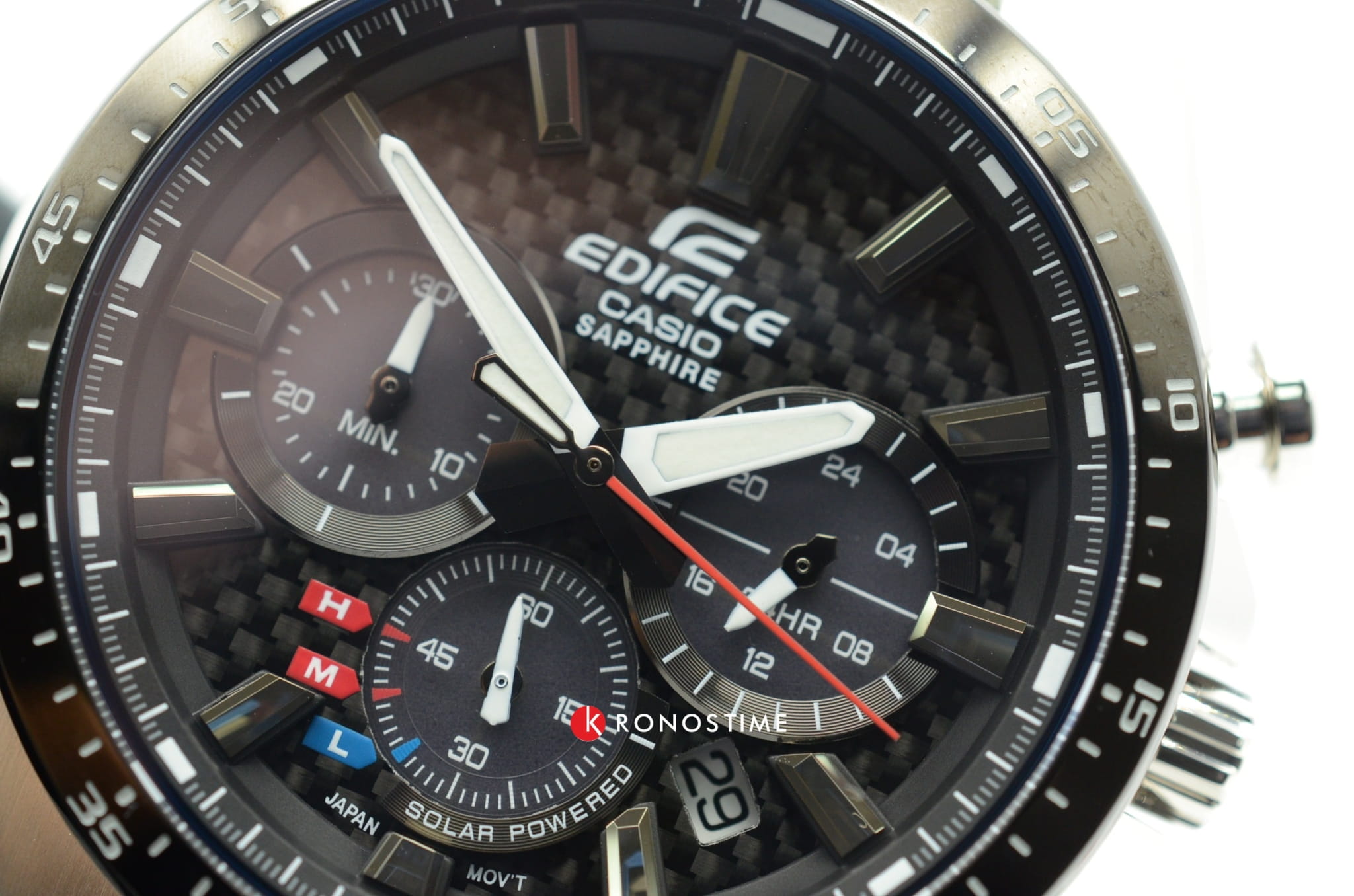 Дерзкий автомобильный дизайн, обтекаемые формы, строгие линии никого не оставят равнодушным. Эксклюзивной деталью стал циферблат с шахматным узором, поверхность которого выполнена из карбона. Модель способна получать энергию от солнечного света, она основана на технологии . Следить за состоянием заряда аккумулятора можно благодаря наличию специального индикатора. Противоударный корпусУдаропрочный корпусМеханизм заключён в корпус, выполненный из современных материалов, устойчивых к ударам, механическим повреждениям и падению с высоты: инновационный пластик, карбон, нержавеющая сталь, титан. и браслет сделаны из стали 316L, долговечный материал устойчив к коррозии. Точность хода кварцевого японского механизма составляет +/- 20 секунд в месяц. БезельБезельВнешний ободок, закрепляющий стекло. В спортивных часах так называется поворотное кольцо с делениями на циферблате, выполняет роль таймера – замеряет отрезки времени на шкале. Неподвижный безель – элемент декора. Однонаправленно вращающийся безель на дайверских часах позволяет фиксировать моменты погружения и выныривания на поверхность. с IP-покрытиемIP-покрытиеМетод ионного напыления. Демонстрирует повышенную устойчивость к истиранию, окислению и химическим веществам. Под воздействием высокого давления и температуры около 1500°C молекулы металла надёжно соединяются с частицами корпуса часов.. Сапфировое стекло. Закручивающаяся задняя крышка. Подсветка NeobriteПодсветка NeobriteИспользование светонакопительных составов на основе сульфида цинка или алюмината стронция, яркий свет можно наблюдать на протяжении 6-10 часов после «зарядки» часов около источника света.. Водонепроницаемость 10 бар. Секундомер, календарь. Габариты: 50 x 47,5 x 12,7 мм.
