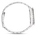 Серебристо-чёрная модель наделена элементами дайверского дизайна, повторяя внешний облик механических часов для дайвинга 1950-х годов, в глаза бросается массивный однонаправленно вращающийся безельБезельВнешний ободок, закрепляющий стекло. В спортивных часах так называется поворотное кольцо с делениями на циферблате, выполняет роль таймера – замеряет отрезки времени на шкале. Неподвижный безель – элемент декора. Однонаправленно вращающийся безель на дайверских часах позволяет фиксировать моменты погружения и выныривания на поверхность. с фигурным краем, крупные стрелки и часовые индексы. Секундная стрелка дополнена жёлтым наконечником, что обеспечивает превосходную читаемость показаний с циферблата. Кварцевый японский механизм с точностью хода часов +/- 20 секунд в месяц. Батарейка рассчитана на 3 года работы. Люминесцентная подсветка NeobriteПодсветка NeobriteИспользование светонакопительных составов на основе сульфида цинка или алюмината стронция, яркий свет можно наблюдать на протяжении 6-10 часов после «зарядки» часов около источника света.. Водонепроницаемость при давлении до 10 бар. Ударопрочный корпусУдаропрочный корпусМеханизм заключён в корпус, выполненный из современных материалов, устойчивых к ударам, механическим повреждениям и падению с высоты: инновационный пластик, карбон, нержавеющая сталь, титан. и браслет из нержавеющей стали 316L. Чёрное IP-покрытиеIP-покрытиеМетод ионного напыления. Демонстрирует повышенную устойчивость к истиранию, окислению и химическим веществам. Под воздействием высокого давления и температуры около 1500°C молекулы металла надёжно соединяются с частицами корпуса часов.. Минеральное стекло. Окошко индикации числа. Габариты: 42 x 37,8 x 9,4 мм.