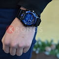Брендовый аксессуар с инверсионным циферблатом ярко-синего цвета - то, что нужно для решения повседневных задач. Наручные часы могут похвастаться ударопрочным корпусомУдаропрочный корпусМеханизм заключён в корпус, выполненный из современных материалов, устойчивых к ударам, механическим повреждениям и падению с высоты: инновационный пластик, карбон, нержавеющая сталь, титан. из прочного пластика, поглощающего силу удара, благодаря чему японский кварцевый механизм находится под надёжной защитой. Батарейка рассчитана на 3 года. Минеральное стекло. Цветной алюминиевый безельБезельВнешний ободок, закрепляющий стекло. В спортивных часах так называется поворотное кольцо с делениями на циферблате, выполняет роль таймера – замеряет отрезки времени на шкале. Неподвижный безель – элемент декора. Однонаправленно вращающийся безель на дайверских часах позволяет фиксировать моменты погружения и выныривания на поверхность.. Автоматическая светодиодная подсветкаСветодиодная подсветкаСветодиодная или LED-подсветка обеспечивает появление яркого холодного свечения за счёт LED-элементов - маленьких лампочек. Они потребляют минимальное количество энергии, чаще всего можно встретить 1 светодиод, в нижней части циферблата.. Водонепроницаемость до 20 бар. Отключение и включение звука кнопок. Таймер обратного отсчёта, секундомер, сопровождение наступления каждого часа звуковым сигналом, будильник, календарь, мировое времяМировое время Полезное часовое усложнение, отображающее время в основных городах и известных областях по всему миру, оно связано с часовыми поясами, удобно для путешественников и бизнесменов. . Габариты: 55,1 x 52,5 x 16,3 мм.