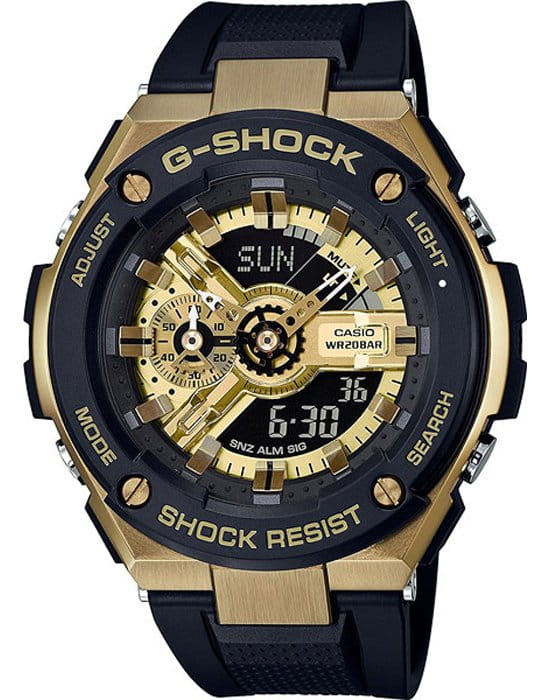 Компания Casio выпустила новые часы G-SHOCK G-STEEL в более компактном формате.Часы GST-400G доступны в черно-золотом цвете.