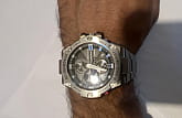 Наручные часы отражают динамичный характер. Необычным элементом стал счётчик у отметки 9 часов, имитирующий турбину. Он помогает контролировать уровень заряда батарейки, чем больше цвета вы видите, тем выше необходимость зарядить модель. Питание осуществляется за счёт солнечной батареи - технология . Также стоит обратить внимание на противоударный корпусУдаропрочный корпусМеханизм заключён в корпус, выполненный из современных материалов, устойчивых к ударам, механическим повреждениям и падению с высоты: инновационный пластик, карбон, нержавеющая сталь, титан. из пластика и стали 316L, такое усиленное сочетание позволяет добиться максимальной прочности. Надёжный стальной браслет. Минеральное стекло. СветодиоднаяСветодиодная подсветкаСветодиодная или LED-подсветка обеспечивает появление яркого холодного свечения за счёт LED-элементов - маленьких лампочек. Они потребляют минимальное количество энергии, чаще всего можно встретить 1 светодиод, в нижней части циферблата. и люминесцентная подсветкаЛюминесцентное покрытиеПозволяет считывать показания времени в темноте. Производители наносят на стрелки, часовые индексы, безель или поверхность циферблата светонакопительный состав, дающий холодное свечение.. Завинчивающаяся заводная головка. Возможности: BluetoothBluetoothСовременная технология, позволяющая синхронизировать часы с телефоном и переносить данные. Часы с Bluetooth расширяют возможности вашего смартфона и делают его использование ещё более удобным., ежедневный будильник, секундомер, хронографХронографФункция позволяет измерять отрезки времени с особой точностью: часы, минуты, секунды. Верным признаком хронографа является наличие на циферблате 3 дополнительных окошек-счётчиков., мировое времяМировое время Полезное часовое усложнение, отображающее время в основных городах и известных областях по всему миру, оно связано с часовыми поясами, удобно для путешественников и бизнесменов. , автоматический календарь, таймер. Габариты: 58,1 x 53,8 x 14,1 мм.