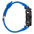 Брендовая модель серии G-Steel представлена в оригинальном исполнении, дизайнеры акцентировали внимание на внушительном безелеБезельВнешний ободок, закрепляющий стекло. В спортивных часах так называется поворотное кольцо с делениями на циферблате, выполняет роль таймера – замеряет отрезки времени на шкале. Неподвижный безель – элемент декора. Однонаправленно вращающийся безель на дайверских часах позволяет фиксировать моменты погружения и выныривания на поверхность. с IP-покрытиемIP-покрытиеМетод ионного напыления. Демонстрирует повышенную устойчивость к истиранию, окислению и химическим веществам. Под воздействием высокого давления и температуры около 1500°C молекулы металла надёжно соединяются с частицами корпуса часов.. Стильным дополнением стал синий каучуковый ремешок, обеспечивающий комфортное ношение. Это часы на солнечной батарее , позволяющие забыть о необходимости завода. Люминесцентная подсветкаЛюминесцентное покрытиеПозволяет считывать показания времени в темноте. Производители наносят на стрелки, часовые индексы, безель или поверхность циферблата светонакопительный состав, дающий холодное свечение. стрелок, яркая светодиодная подсветкаСветодиодная подсветкаСветодиодная или LED-подсветка обеспечивает появление яркого холодного свечения за счёт LED-элементов - маленьких лампочек. Они потребляют минимальное количество энергии, чаще всего можно встретить 1 светодиод, в нижней части циферблата. дисплея. Ударопрочный корпусУдаропрочный корпусМеханизм заключён в корпус, выполненный из современных материалов, устойчивых к ударам, механическим повреждениям и падению с высоты: инновационный пластик, карбон, нержавеющая сталь, титан. из пластика и хирургической стали 316L. Водостойкость 20 бар. Таймер, секундомер, будильник, мировое времяМировое время Полезное часовое усложнение, отображающее время в основных городах и известных областях по всему миру, оно связано с часовыми поясами, удобно для путешественников и бизнесменов. , автоматический календарь, приём радиосигнала для корректировки времени, хронографХронографФункция позволяет измерять отрезки времени с особой точностью: часы, минуты, секунды. Верным признаком хронографа является наличие на циферблате 3 дополнительных окошек-счётчиков.. Габариты: 55,9 x 49,3 x 15,3 мм.