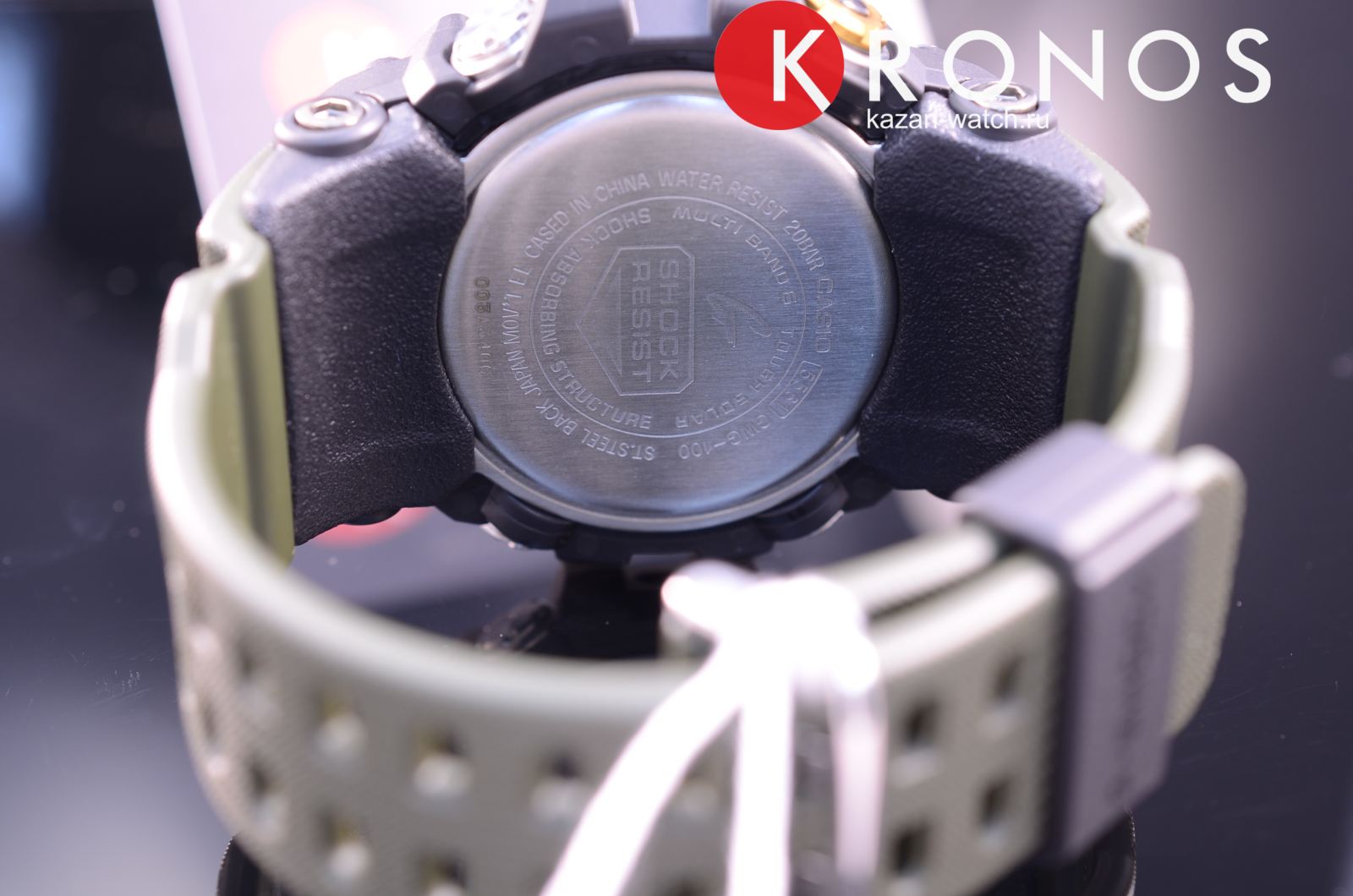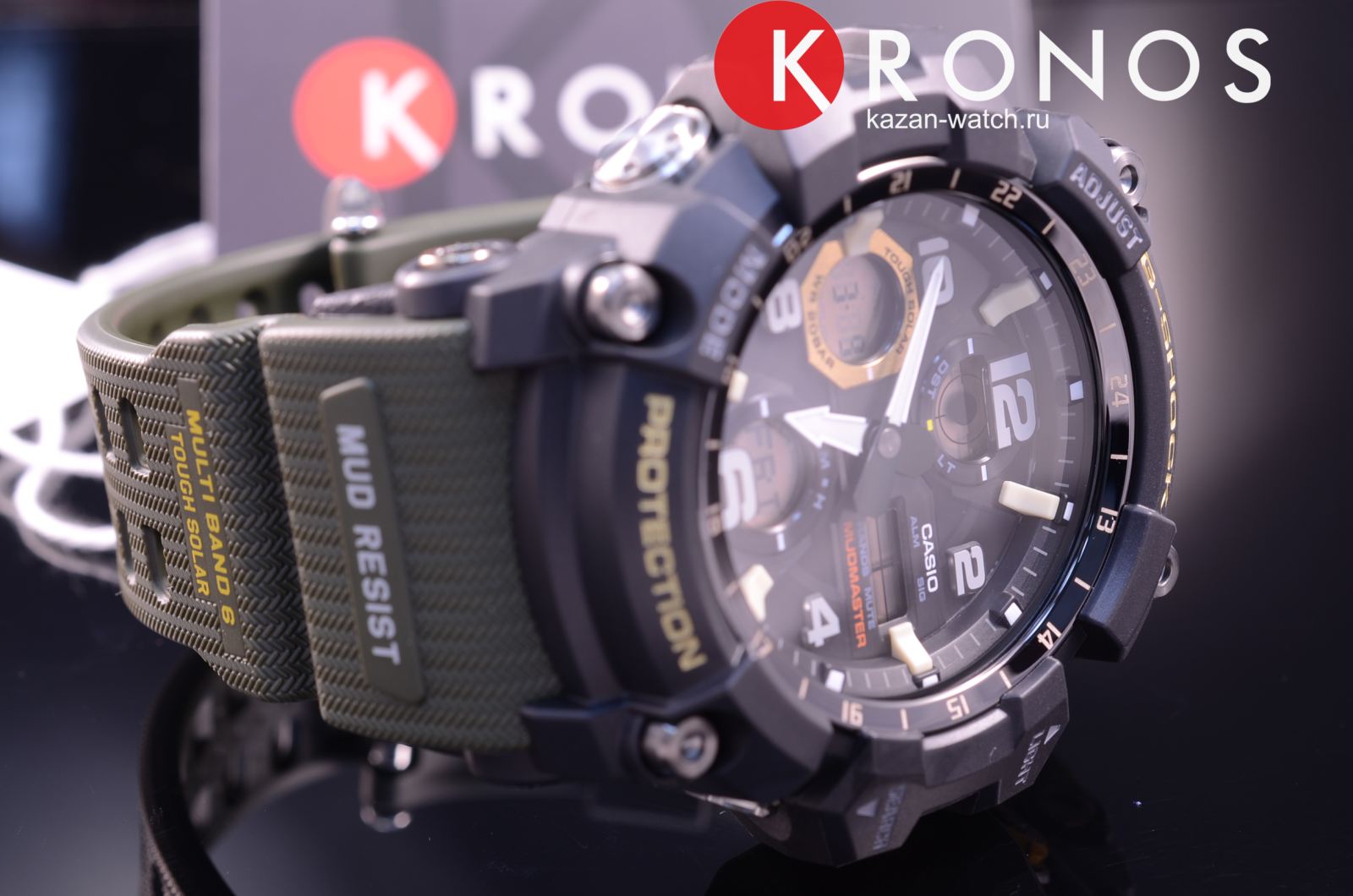 Наручные часы относятся к линейке Mudmaster, массивная модель с крупными деталями на вашем запястье точно не останется незамеченной. Ключевой особенностью стал герметичный ударопрочный корпусУдаропрочный корпусМеханизм заключён в корпус, выполненный из современных материалов, устойчивых к ударам, механическим повреждениям и падению с высоты: инновационный пластик, карбон, нержавеющая сталь, титан., способный препятствовать попаданию внутрь пыли, песка и грязи. Также ему не страшны вибрации, падение и удары. Это часы на солнечной батарее с технологией , время работы батарейки без подзарядки составляет 7 месяцев. Специальный индикатор позволяет следить за уровнем зарядки. Минеральное стекло. Двойная светодиодная подсветкаСветодиодная подсветкаСветодиодная или LED-подсветка обеспечивает появление яркого холодного свечения за счёт LED-элементов - маленьких лампочек. Они потребляют минимальное количество энергии, чаще всего можно встретить 1 светодиод, в нижней части циферблата. ЖК-дисплея и циферблата. Удобный полимерный ремешок защитного цвета хаки. Стрелки с люминесцентной подсветкойЛюминесцентное покрытиеПозволяет считывать показания времени в темноте. Производители наносят на стрелки, часовые индексы, безель или поверхность циферблата светонакопительный состав, дающий холодное свечение.. Водостойкость 20 бар. Коррекция времени по радиосигналу, функция мирового времениМировое время Полезное часовое усложнение, отображающее время в основных городах и известных областях по всему миру, оно связано с часовыми поясами, удобно для путешественников и бизнесменов. , автоматический календарь, будильник, таймер, секундомер. Габариты: 56,2 x 54,9 x 17,3 мм.