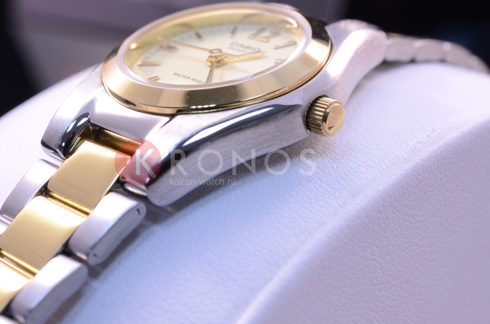 На поверхность наручных часов от Casio нанесено защитное IP-покрытиеIP-покрытиеМетод ионного напыления. Демонстрирует повышенную устойчивость к истиранию, окислению и химическим веществам. Под воздействием высокого давления и температуры около 1500°C молекулы металла надёжно соединяются с частицами корпуса часов.. Стальной корпус аксессуара сделан из нержавеющей стали. На круглом циферблате светло-золотистого цвета расположены аккуратные временные отметки в виде арабских цифр и штрихов. Двухцветный браслет сделан из нержавеющей стали. Часы надежно защищены минеральным стеклом. Вес аксессуара равен 52 граммам. Часы работают от батарейки со сроком службы в 3 года.
