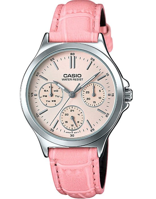 Брендовый аксессуар в розовом цвете имеет корпус, выполненный из стали 316L, материал особо ценится благодаря долговечности и устойчивости к коррозии. Наручные часы с кожаным ремешком подойдут к любому образу, давая простор для экспериментов со стилями. Кварцевый японский механизм с точностью хода +/- 20 секунд в месяц. Надёжное минеральное стекло. Люминесцентная подсветкаЛюминесцентное покрытиеПозволяет считывать показания времени в темноте. Производители наносят на стрелки, часовые индексы, безель или поверхность циферблата светонакопительный состав, дающий холодное свечение.. Водостойкость до 3 бар. Отображение текущего числа и дня недели. Габариты: 38,3 x 33,2 x 8,2 мм.