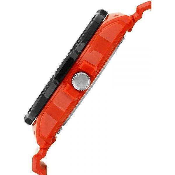 Облегчено определение времени благодаря крупным арабским цифрам на циферблате. Вставлен вращающийся безельБезельВнешний ободок, закрепляющий стекло. В спортивных часах так называется поворотное кольцо с делениями на циферблате, выполняет роль таймера – замеряет отрезки времени на шкале. Неподвижный безель – элемент декора. Однонаправленно вращающийся безель на дайверских часах позволяет фиксировать моменты погружения и выныривания на поверхность.. Видимость показателей в темноте обеспечивает люминесцентная подсветкаЛюминесцентное покрытиеПозволяет считывать показания времени в темноте. Производители наносят на стрелки, часовые индексы, безель или поверхность циферблата светонакопительный состав, дающий холодное свечение.. Высокая водонепроницаемость в 100 WR.