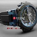 Чёрный циферблат с синими акцентами отличается необычной ромбовидной текстурой, внушительный карбоновый безель имеет шахматный узор. Casio обновили ударопрочный корпусУдаропрочный корпусМеханизм заключён в корпус, выполненный из современных материалов, устойчивых к ударам, механическим повреждениям и падению с высоты: инновационный пластик, карбон, нержавеющая сталь, титан., по сравнению с предыдущими моделями MTG он получился компактнее и тоньше (14,4 мм). Корпус выполнен из нержавеющей стали и пластика, усиленного карбоном - Carbon Core GuardCarbon Core Guard Новейшая структура корпуса, разработанная Casio. Полиуретановая пластина дополнительно усилена карбоновыми вставками, что придаёт специальную защиту от механических повреждений. Карбон отличается лёгкостью и прочностью.. Дополнительно внедрили вставки из материала alphaGEL, силиконовая прослойка обеспечивает возникновение амортизирующего эффекта. Чёрное IP-покрытиеIP-покрытиеМетод ионного напыления. Демонстрирует повышенную устойчивость к истиранию, окислению и химическим веществам. Под воздействием высокого давления и температуры около 1500°C молекулы металла надёжно соединяются с частицами корпуса часов.. Технология . Подсветка экрана. Стекло из сапфира. Функции: Bluetooth SmartBluetoothСовременная технология, позволяющая синхронизировать часы с телефоном и переносить данные. Часы с Bluetooth расширяют возможности вашего смартфона и делают его использование ещё более удобным., поиск телефона, будильник, приём радиосигнала, хронографХронографФункция позволяет измерять отрезки времени с особой точностью: часы, минуты, секунды. Верным признаком хронографа является наличие на циферблате 3 дополнительных окошек-счётчиков., календарь, мировое времяМировое время Полезное часовое усложнение, отображающее время в основных городах и известных областях по всему миру, оно связано с часовыми поясами, удобно для путешественников и бизнесменов. . Браслет из полимерного материала. Габариты: 51,7 x 55,8 x 14,4 мм.