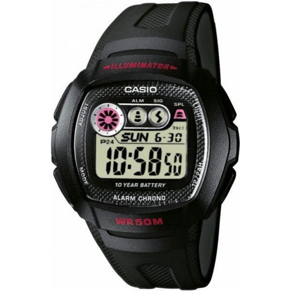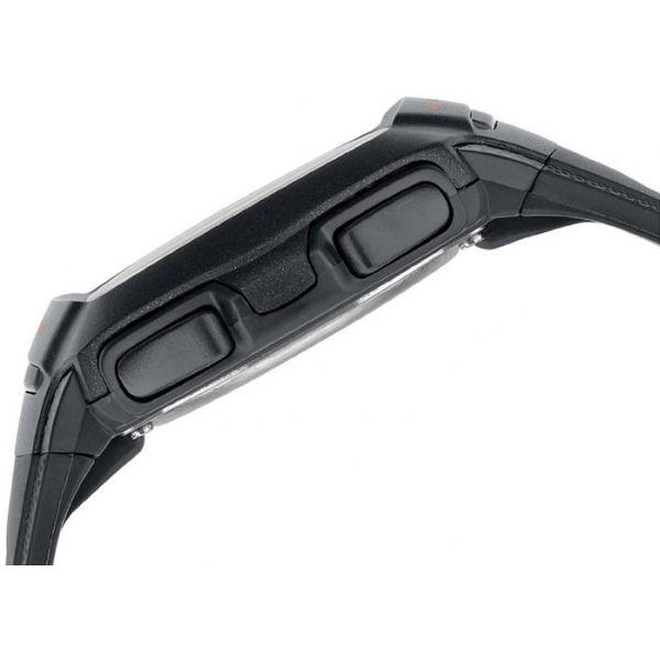 Спортивные мужские часы. Автоматический календарь. 12и 24-часовой формат времени. Секундомер. Таймер. Отображение времени в двух часовых поясах. Корпус - Пластиковый; Стекло - Стеклопластик; Водозащита - 50 м. (WR 50); Материал ремешка - Пластиковый; Цвет ремешка - Черный; Цвет циферблата - Lcd.