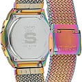 Уже известный 8-угольный ударопрочный корпусУдаропрочный корпусМеханизм заключён в корпус, выполненный из современных материалов, устойчивых к ударам, механическим повреждениям и падению с высоты: инновационный пластик, карбон, нержавеющая сталь, титан. выполнен из нержавеющей стали 316L, как и стильный браслет миланского плетения. Оригинально выглядит переливающаяся вставка, окружающая цифровое окошко. Кварцевый высокоточный механизм работает от батарейки, аккумулятор рассчитан на 3 года эксплуатации. Светодиодная подсветкаСветодиодная подсветкаСветодиодная или LED-подсветка обеспечивает появление яркого холодного свечения за счёт LED-элементов - маленьких лампочек. Они потребляют минимальное количество энергии, чаще всего можно встретить 1 светодиод, в нижней части циферблата. дисплея. Долговечное IP-покрытиеIP-покрытиеМетод ионного напыления. Демонстрирует повышенную устойчивость к истиранию, окислению и химическим веществам. Под воздействием высокого давления и температуры около 1500°C молекулы металла надёжно соединяются с частицами корпуса часов.. Минеральное стекло устойчиво к появлению царапин. Автоматический календарь, будильник, секундомер. Габариты: 38 x 39,6 x 7,3 мм.
