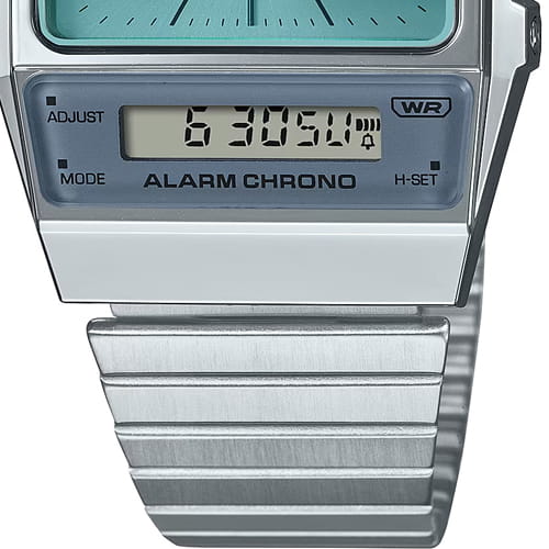 Спортивные японские унисекс часы с секундомеромСекундомерСекундоме́р — прибор, способный измерять интервалы времени с точностью до долей секунды. Casio Vintage AQ-800EC-2A, кварцевый механизм с высокой точностью. Класс водозащиты: 30 метров, позволит защитить корпус от случайных брызг или капель дождя. Корпус часов изготовлен из пластика серебристого цвета. На белом циферблате центральные часовая и минутная стрелки. Отдельно вынесен дополнительный циферблат мирового времениМировое время Полезное часовое усложнение, отображающее время в основных городах и известных областях по всему миру, оно связано с часовыми поясами, удобно для путешественников и бизнесменов. , позволяющий одновременно отобразить время двух часовых поясов. У модели присутствуют функции секундомераСекундомерСекундоме́р — прибор, способный измерять интервалы времени с точностью до долей секунды. с точностью 1/100 секунды и пределом измерения 1 час, ежедневного будильникаБудильникБуди́льник — часы, в заданный момент времени подающие звуковой, световой и/или в редких случаях другой сигнал.. Стальной браслет с регулируемой застежкой.