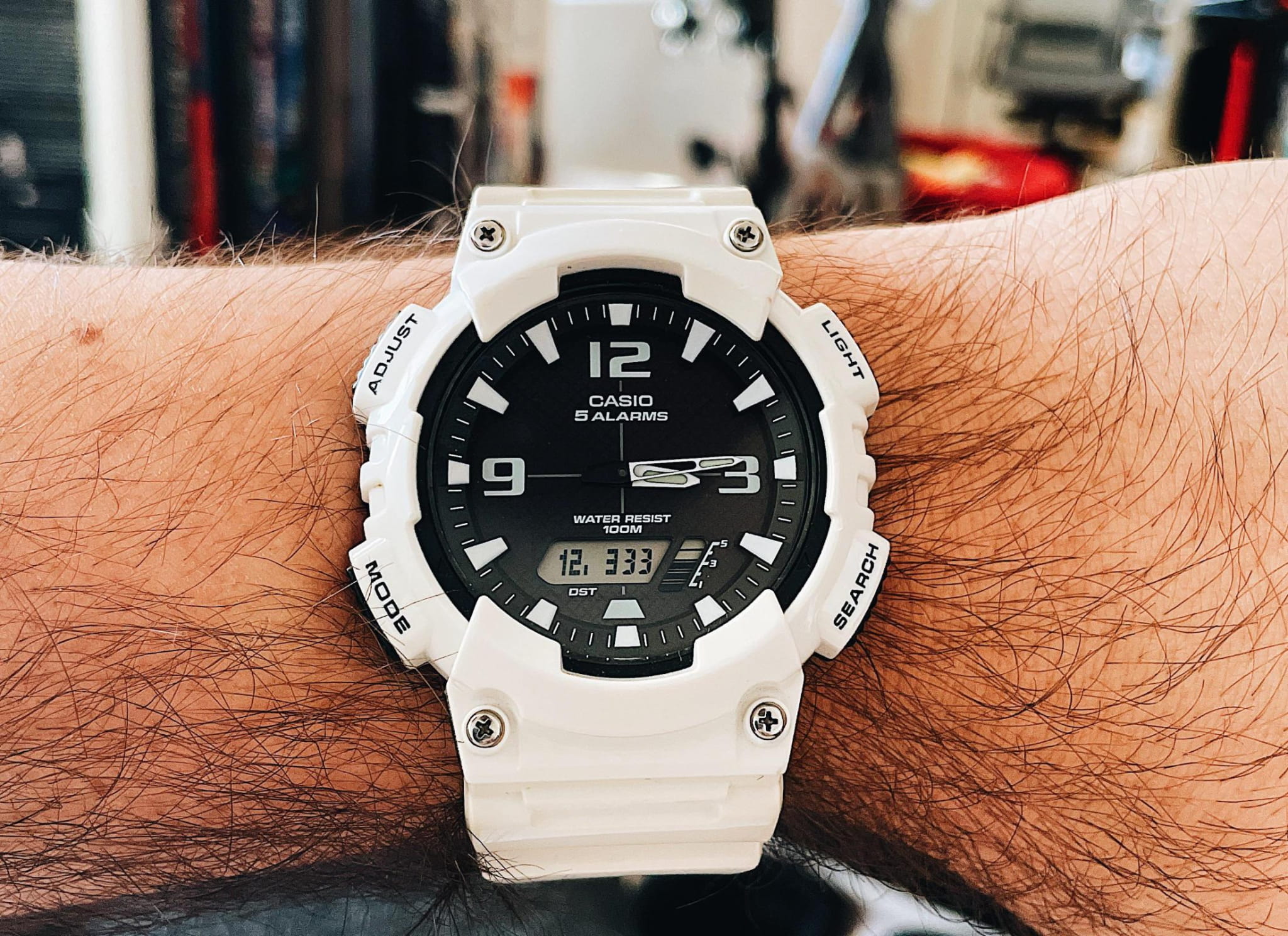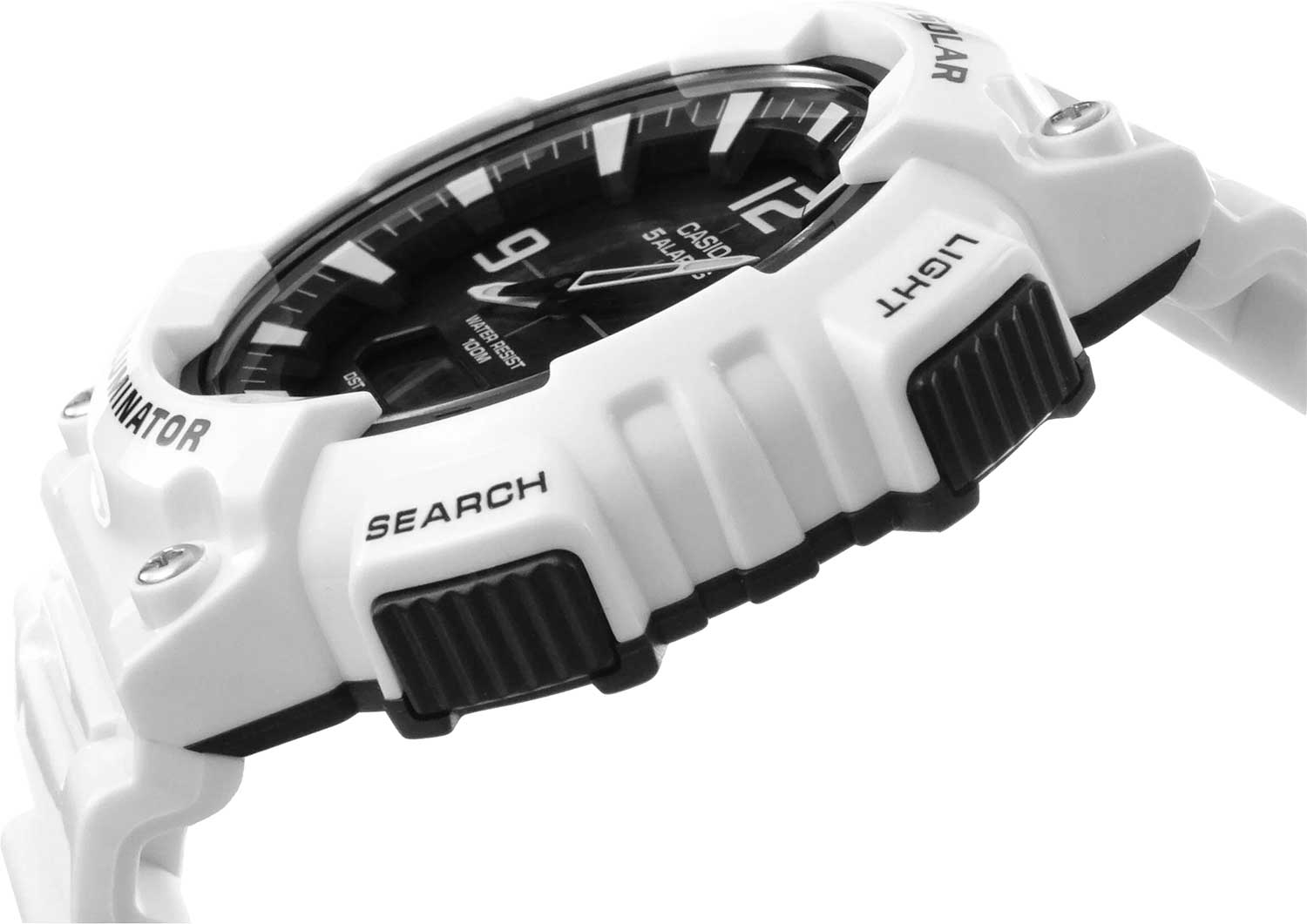 Многофункциональные и сдержанные часы в спортивном стиле станут идеальным выбором для современных мужчин. Analog-Digital Combination AQ-S810WC-7A. LCD циферблат подсвечивается светодиодной подсветкойСветодиодная подсветкаСветодиодная или LED-подсветка обеспечивает появление яркого холодного свечения за счёт LED-элементов - маленьких лампочек. Они потребляют минимальное количество энергии, чаще всего можно встретить 1 светодиод, в нижней части циферблата.. Питание от солнечной энергии, индикатор заряда батареи. Функция автоматического сохранения энергии (отключает LCD дисплей). Время работы аккумулятора без подзарядки - 10 месяцев, при включенной функции сохранения энергии - 23 месяцев. CекундомерСекундомерСекундоме́р — прибор, способный измерять интервалы времени с точностью до долей секунды. с точностью показаний 1/100с и временем измерения 1ч. Два таймераТаймерОтсчитывает секунды в обратном направлении в заданном интервале времени. обратного отсчета времени от 5с до 100 мин с устанавливаемым количеством повторов от 1 до 10. Мировое времяМировое время Полезное часовое усложнение, отображающее время в основных городах и известных областях по всему миру, оно связано с часовыми поясами, удобно для путешественников и бизнесменов. . 12-ти и 24-х часовой формат времени. Шесть языков отображения дня недели: английский, португальский, испанский, французский, немецкий и итальянский. Функция включения/отключения звука. Класс водозащиты: 100 метров, позволит плавать, нырять и заниматься другими водными видами спорта. Пластиковый ремешок на стандартной застёжке.
