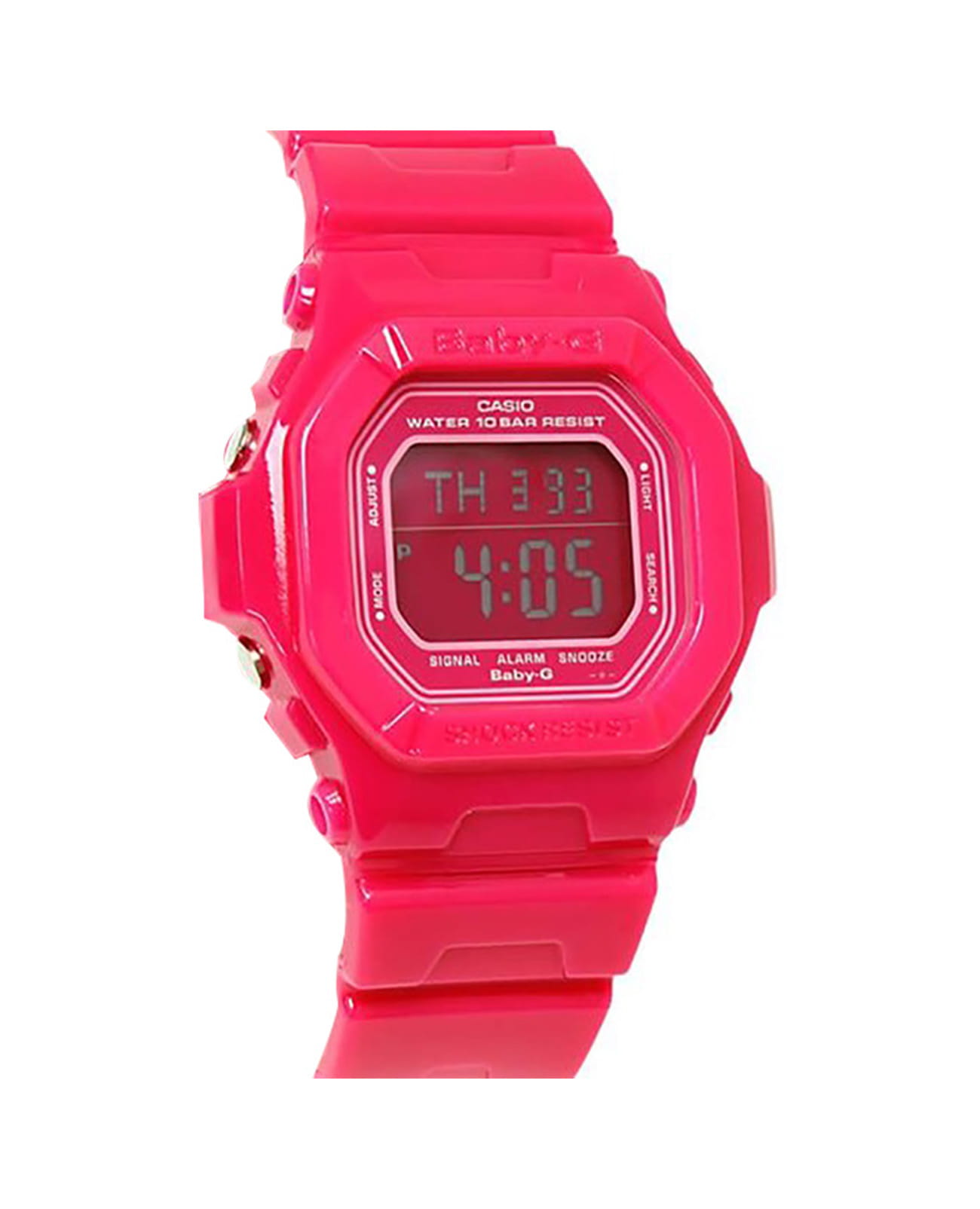Японские женские часы Casio Baby-G BG-5601-4DR из коллекции Baby-G. Серия, которая выражает спортивность и цвет, которые являются основой бренда Baby-G. Минеральное стеклоМинеральное стеклоМинеральное стекло представляет собой искусственно выращенный минерал кварца. Такое стекло отличается особой устойчивостью к повреждениям и царапинам. Уступает по некоторым качествам сапфировому стеклу. устойчивое к появлению царапин, обладающее высокой прозрачностью. Корпус часов изготовлен из полимерного материала. Функции: автоматическая светодиодная подсветка.Необритовое покрытиеПодсветка NeobriteИспользование светонакопительных составов на основе сульфида цинка или алюмината стронция, яркий свет можно наблюдать на протяжении 6-10 часов после «зарядки» часов около источника света. продолжает светиться в темноте даже после непродолжительного пребывания на свету.Ударопрочный корпусУдаропрочный корпусМеханизм заключён в корпус, выполненный из современных материалов, устойчивых к ударам, механическим повреждениям и падению с высоты: инновационный пластик, карбон, нержавеющая сталь, титан. защищает механизм от ударов и вибрации. Функция Мирового времениМировое время Полезное часовое усложнение, отображающее время в основных городах и известных областях по всему миру, оно связано с часовыми поясами, удобно для путешественников и бизнесменов. . СекундомерСекундомерСекундоме́р — прибор, способный измерять интервалы времени с точностью до долей секунды. с точностью измерения 1/100 секунды и измерением до 23 часов 59 минут 59,99 cек. ТаймерТаймерОтсчитывает секунды в обратном направлении в заданном интервале времени. обратного отсчета (диапазон времени 24 часа), автоматический календарь, 12/24 отображение времени. 5 ежедневных будильниковБудильникБуди́льник — часы, в заданный момент времени подающие звуковой, световой и/или в редких случаях другой сигнал.. Функция записной книжки обеспечивает 25 сохраненных имен и телефонных номеров, которые всегда под рукой благодаря встроенной базе данных. Каждая запись может включать в себя текст из 8 букв и 12 цифр.Класс водозащиты: 100 метров, позволит плавать без погружения. Ремешок из полимерного материала на стандартной застежке.