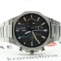 Ярко-бирюзовые цветовые акценты счётчиков гармонируют с тёмным фоном. Часы выполнены в спортивном стиле, ссылаясь на дизайн эксклюзивных спорткаров и автомобильных деталей. Они основаны на технологии , оснащены расширенными функциональными возможностями: BluetoothBluetoothСовременная технология, позволяющая синхронизировать часы с телефоном и переносить данные. Часы с Bluetooth расширяют возможности вашего смартфона и делают его использование ещё более удобным. нового поколения с низким потреблением энергии, автоматический календарь, хронографХронографФункция позволяет измерять отрезки времени с особой точностью: часы, минуты, секунды. Верным признаком хронографа является наличие на циферблате 3 дополнительных окошек-счётчиков., секундомер, индикатор последнего круга дистанции Last Lap Indicator, мировое время. Модель комплектуется надёжным браслетом из нержавеющей стали. Заводная головка с защитой. Ударопрочный корпусУдаропрочный корпусМеханизм заключён в корпус, выполненный из современных материалов, устойчивых к ударам, механическим повреждениям и падению с высоты: инновационный пластик, карбон, нержавеющая сталь, титан.. Сапфировое стекло с антибликовым покрытием. Водонепроницаемость WR 100. Подсветка NeobriteПодсветка NeobriteИспользование светонакопительных составов на основе сульфида цинка или алюмината стронция, яркий свет можно наблюдать на протяжении 6-10 часов после «зарядки» часов около источника света.. Габариты: 44,6 x 51,1 x 8,9 мм.