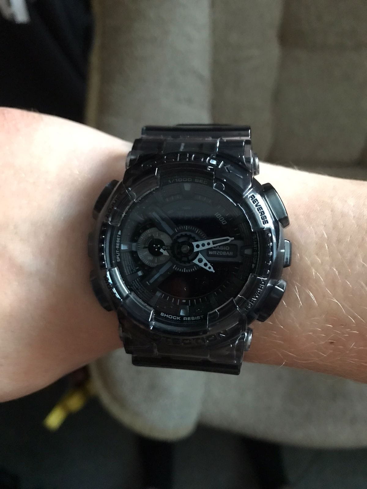 Casio GA-110SKE-8AER современные часы в ударопрочном корпусе, с удобным элементом управления в виде колеса прокрутки. Минеральное стекло, устойчивое к появлению царапин. Корпус часов выполнен в черной цветовой гамме, часы прочно удерживаются на руке браслетом из полимерного пластика. Часы GA-110SKE-8AER снабжены множеством дополнительных функций - повтор будильника, автоматический календарь. Ежечасный сигнал, повтор сигнала будильника, мировое время. Водонепроницаемость часов до 200 метров. Магнитоустойчивые. Элемент питания CR1220, точность хода +\- 15 сек.в месяц.