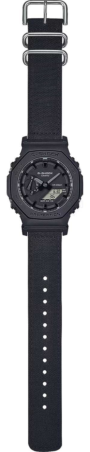 Японские мужские часы противоударные с карбоновым корпусом Casio G-Shock GA-2100BCE-1ADR (GA-2100BCE-1A), кварцевый механизм с высокой точностью. Класс водозащиты: 200 метров, позволит плавать, нырять и заниматься другими водными видами спорта. Корпус часов изготовлен из карбона и пластика. Стрелки с люминесцентным покрытиемЛюминесцентное покрытиеПозволяет считывать показания времени в темноте. Производители наносят на стрелки, часовые индексы, безель или поверхность циферблата светонакопительный состав, дающий холодное свечение.. Тканевый ремешок.