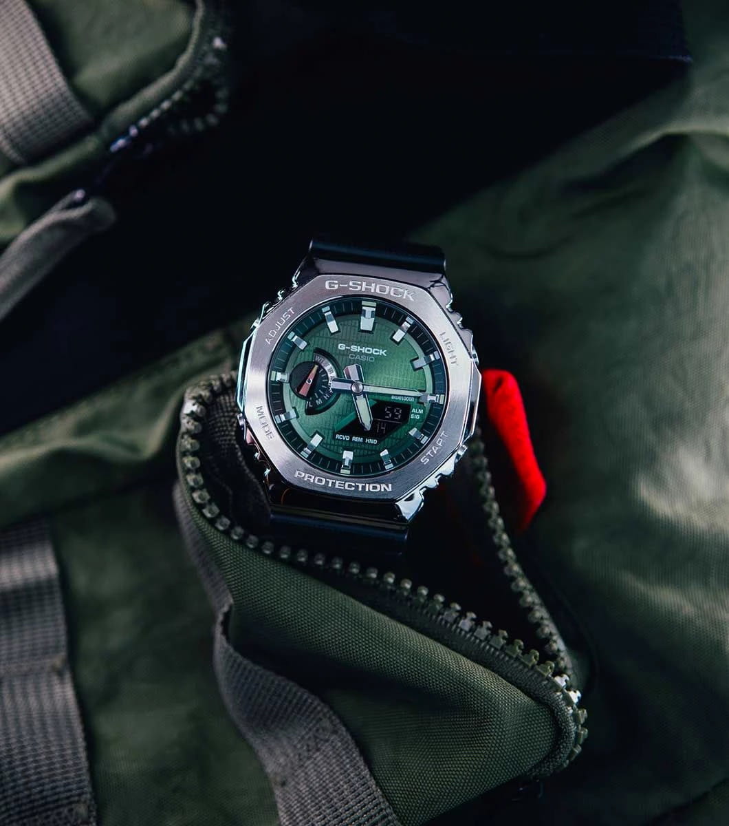 Мужские кварцевые часы Casio G-Shock GBM-2100A-1A3. Корпус часов изготовлен из нержавеющей стали. Стрелки с люминесцентным покрытиемЛюминесцентное покрытиеПозволяет считывать показания времени в темноте. Производители наносят на стрелки, часовые индексы, безель или поверхность циферблата светонакопительный состав, дающий холодное свечение.. Водозащита: 200 метров, позволит плавать, нырять и заниматься другими водными видами спорта. Минеральное стеклоМинеральное стеклоМинеральное стекло представляет собой искусственно выращенный минерал кварца. Такое стекло отличается особой устойчивостью к повреждениям и царапинам. Уступает по некоторым качествам сапфировому стеклу. устойчивое к появлению царапин, обладающее высокой прозрачностью.