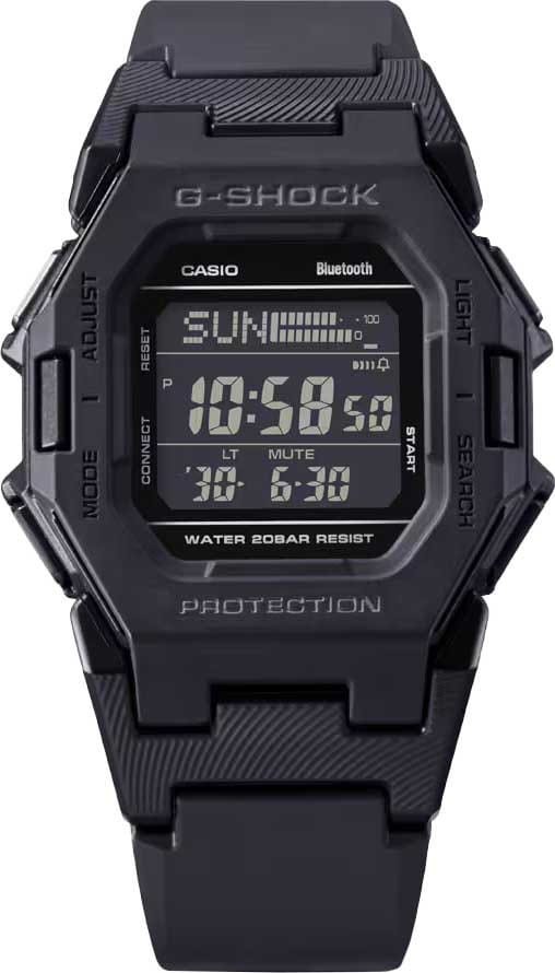 Японские мужские ударопрочные часы c функцией Bluetooth Casio G-Shock GD-B500-1, кварцевый механизм с высокой точностью. Класс водозащиты: 200 метров, позволит плавать, нырять и заниматься другими водными видами спорта. Ударопрочный корпусУдаропрочный корпусМеханизм заключён в корпус, выполненный из современных материалов, устойчивых к ударам, механическим повреждениям и падению с высоты: инновационный пластик, карбон, нержавеющая сталь, титан. защищает механизм от ударов и вибрации. Долговечный и экономичный матричный дисплей MIP LCD высокой четкости улучшает читаемость и восприятие любых данных. Отображаемые графики приливов и отливов, данные о Луне, время и уровень прилива/отлива, время восхода/заката солнца. Фирменная экономичная светодиодная подсветкаСветодиодная подсветкаСветодиодная или LED-подсветка обеспечивает появление яркого холодного свечения за счёт LED-элементов - маленьких лампочек. Они потребляют минимальное количество энергии, чаще всего можно встретить 1 светодиод, в нижней части циферблата. Super Illuminator с функцией Afterglow. Базовые функции: 12-ти и 24-х часовой формат времени, секундомерСекундомерСекундоме́р — прибор, способный измерять интервалы времени с точностью до долей секунды. с точностью показаний 1 сек и временем измерения 100 ч, сплит-хронографСплит-хронографИспользуется для измерения продолжительности нескольких временных отрезков, начинающихся одновременно, а заканчивающихся в разное время., возможность установить 5 таймеров, таймер обратного отсчета от 1 сек до 1 ч с автоповтором, мировое времяМировое время Полезное часовое усложнение, отображающее время в основных городах и известных областях по всему миру, оно связано с часовыми поясами, удобно для путешественников и бизнесменов. – 38 городов (38 часовых поясов), всемирное координированное время (UTCUTCВсемирное кординационное время, не имеющее привязки к географическому положению Гринвича, основывается на атомном отсчёте времени. Регулировка времени осуществляется более точно, чем устаревшее GMT.