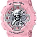 Японские женские часы GMA-S120NP-4A из коллекции G-Shock представлены в спортивном облачении. Кварцевые часы. Аналогово-цифровой циферблат. Наручные часы с противоударным корпусомУдаропрочный корпусМеханизм заключён в корпус, выполненный из современных материалов, устойчивых к ударам, механическим повреждениям и падению с высоты: инновационный пластик, карбон, нержавеющая сталь, титан. выполнены из полимерного материала, легко поглощающего силу удара и вибрации, что делает их надёжным и долговечным аксессуаром. Кварцевый механизм японского производства. Батарейка рассчитана на 3 года службы. Стрелки со светодиодной подсветкойСветодиодная подсветкаСветодиодная или LED-подсветка обеспечивает появление яркого холодного свечения за счёт LED-элементов - маленьких лампочек. Они потребляют минимальное количество энергии, чаще всего можно встретить 1 светодиод, в нижней части циферблата.. Минеральное стеклоМинеральное стеклоМинеральное стекло представляет собой искусственно выращенный минерал кварца. Такое стекло отличается особой устойчивостью к повреждениям и царапинам. Уступает по некоторым качествам сапфировому стеклу.. Защита от магнитных полей. Водонепроницаемость 200 метров, позволит плавать, нырять и заниматься другими водными видами спорта. Функциональные возможности: мировое времяМировое время Полезное часовое усложнение, отображающее время в основных городах и известных областях по всему миру, оно связано с часовыми поясами, удобно для путешественников и бизнесменов. , таймерТаймерОтсчитывает секунды в обратном направлении в заданном интервале времени. обратного отсчёта, будильникБудильникБуди́льник — часы, в заданный момент времени подающие звуковой, световой и/или в редких случаях другой сигнал., хронографХронографФункция позволяет измерять отрезки времени с особой точностью: часы, минуты, секунды. Верным признаком хронографа является наличие на циферблате 3 дополнительных окошек-счётчиков., автоматический календарь до 2099 года, UTCUTCВсемирное кординационное время, не имеющее привязки к географическому положению Гринвича, основывается на атомном отсчёте времени. Регулировка времени осуществляется более точно, чем устаревшее GMT.