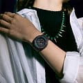 Японские женские часы-хронографХронографФункция позволяет измерять отрезки времени с особой точностью: часы, минуты, секунды. Верным признаком хронографа является наличие на циферблате 3 дополнительных окошек-счётчиков. Casio G-Shock GMA-S2100GA-1A из коллекции G-Shock. Минеральное стеклоМинеральное стеклоМинеральное стекло представляет собой искусственно выращенный минерал кварца. Такое стекло отличается особой устойчивостью к повреждениям и царапинам. Уступает по некоторым качествам сапфировому стеклу. устойчивое к появлению царапин, обладающее высокой прозрачностью. Ударопрочный корпусУдаропрочный корпусМеханизм заключён в корпус, выполненный из современных материалов, устойчивых к ударам, механическим повреждениям и падению с высоты: инновационный пластик, карбон, нержавеющая сталь, титан. защищает механизм от ударов и вибрации. Светодиодная автоподсветка NeobriteПодсветка NeobriteИспользование светонакопительных составов на основе сульфида цинка или алюмината стронция, яркий свет можно наблюдать на протяжении 6-10 часов после «зарядки» часов около источника света.  - при повороте часов в сторону лица подсветка дисплея осуществляется автоматически.  Настраиваемое послесвечение 1,5 или 3сек. Мировое времяМировое время Полезное часовое усложнение, отображающее время в основных городах и известных областях по всему миру, оно связано с часовыми поясами, удобно для путешественников и бизнесменов. – 48 городов (29 часовых поясов). СекундомерСекундомерСекундоме́р — прибор, способный измерять интервалы времени с точностью до долей секунды. с точностью измерения 1/100 секунды и измерением до 23 часов 59 минут 59,99 cек. ТаймерТаймерОтсчитывает секунды в обратном направлении в заданном интервале времени. обратного отсчета (диапазон времени 24 часа), автоматический календарь, 12/24 отображение времени. 5 будильниковБудильникБуди́льник — часы, в заданный момент времени подающие звуковой, световой и/или в редких случаях другой сигнал., ежечасный сигнал. Переключение между домашним и мировым временем. Класс водозащиты: 200 метров, позволит плавать, нырять и заниматься другими водными видами спорта. Ремешок из полимерного материала на стандартной застежке.