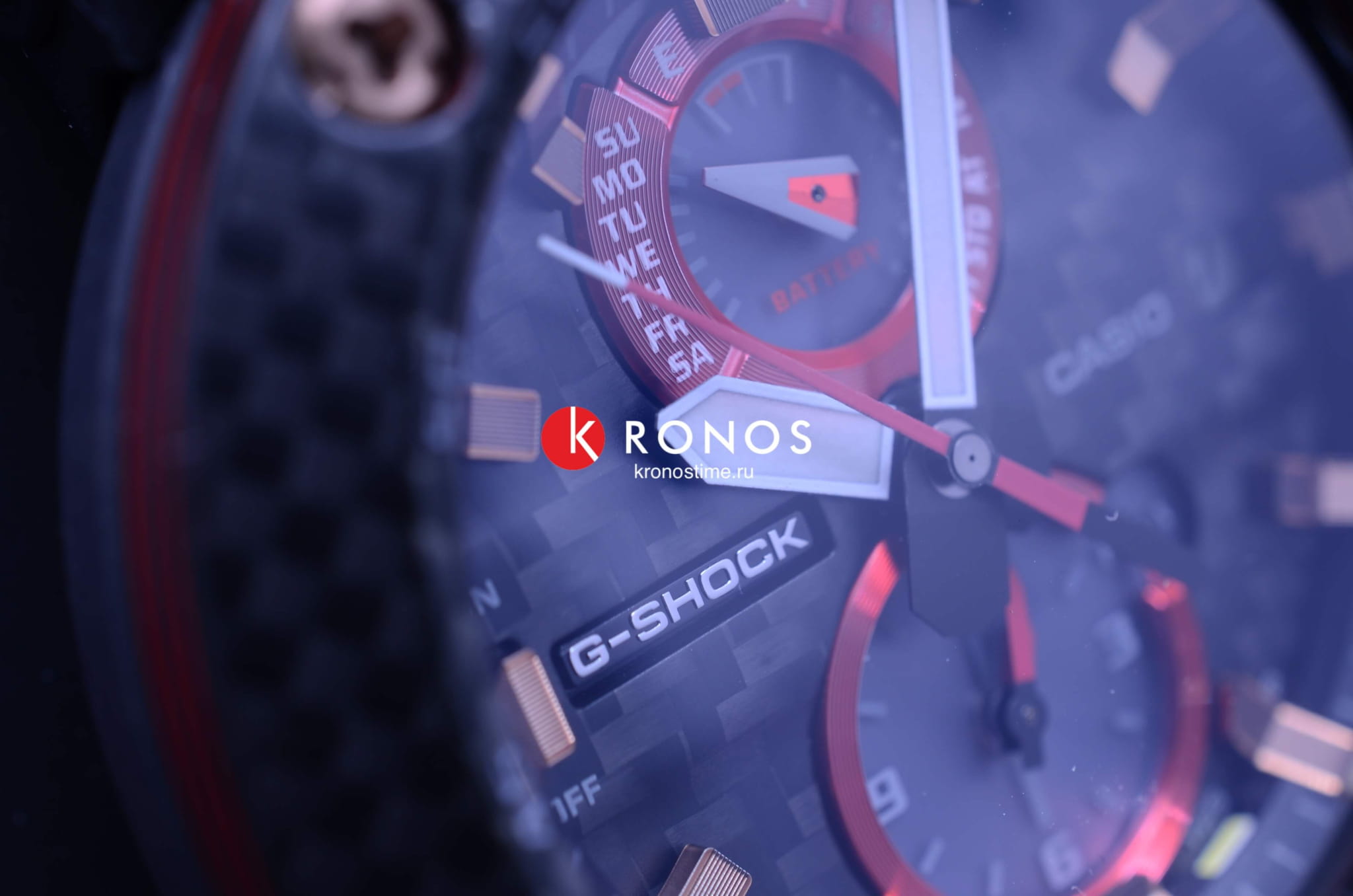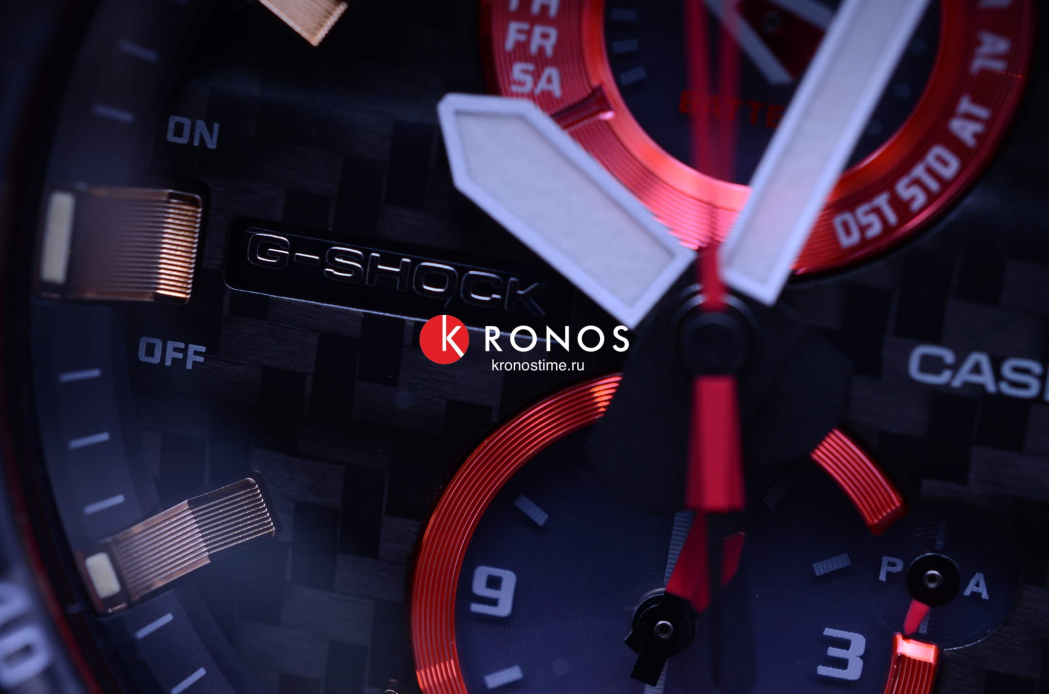 Внушительный аксессуар стильно смотрится на широком запястье, гармонично смотрятся крупные детали в красном и бронзовом цвете. Задняя крышка здесь отсутствует, ударопрочный корпусУдаропрочный корпусМеханизм заключён в корпус, выполненный из современных материалов, устойчивых к ударам, механическим повреждениям и падению с высоты: инновационный пластик, карбон, нержавеющая сталь, титан. сделан из монолитного углеродного монокока, вдохновлённого конструкцией ранних самолётов. Он состоит из 52 карбоновых слоёв, уникальная текстура просматривается на боковых частях безеляБезельВнешний ободок, закрепляющий стекло. В спортивных часах так называется поворотное кольцо с делениями на циферблате, выполняет роль таймера – замеряет отрезки времени на шкале. Неподвижный безель – элемент декора. Однонаправленно вращающийся безель на дайверских часах позволяет фиксировать моменты погружения и выныривания на поверхность. – с успехом реализована технология Carbon Core GuardCarbon Core Guard Новейшая структура корпуса, разработанная Casio. Полиуретановая пластина дополнительно усилена карбоновыми вставками, что придаёт специальную защиту от механических повреждений. Карбон отличается лёгкостью и прочностью.. Полимерный ремешок тоже имеет усиление карбоновыми волокнами. Наручные часы обладают полезным функционалом: BluetoothBluetoothСовременная технология, позволяющая синхронизировать часы с телефоном и переносить данные. Часы с Bluetooth расширяют возможности вашего смартфона и делают его использование ещё более удобным., будильник, мировое времяМировое время Полезное часовое усложнение, отображающее время в основных городах и известных областях по всему миру, оно связано с часовыми поясами, удобно для путешественников и бизнесменов. , таймер, приём радиосигнала, питание от солнечной батареи . Сапфировое стекло с антибликовой обработкой. Яркая люминесцентная подсветкаЛюминесцентное покрытиеПозволяет считывать показания времени в темноте. Производители наносят на стрелки, часовые индексы, безель или поверхность циферблата светонакопительный состав, дающий холодное свечение.. Габариты: 50,1 x 46,4 x 16,9 мм.