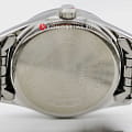 Циферблат дополнен лаконичным узором, часы отлично смотрятся в дополнении к повседневному образу. Циферблат защищен минеральным стекломМинеральное стеклоМинеральное стекло представляет собой искусственно выращенный минерал кварца. Такое стекло отличается особой устойчивостью к повреждениям и царапинам. Уступает по некоторым качествам сапфировому стеклу.. Полезными опциями являются отображение даты и дня недели, люминесцентная подсветкаЛюминесцентное покрытиеПозволяет считывать показания времени в темноте. Производители наносят на стрелки, часовые индексы, безель или поверхность циферблата светонакопительный состав, дающий холодное свечение.. Японский кварцевый механизм обеспечивает высокую точность хода +/- 20 сек/мес. Модель сделана из нержавеющей стали. Браслет с раскладной застёжкойРаскладная застёжкаТакой тип застёжки используется только на браслетах из металла. Она никогда не раскрывается полностью, происходит разделение на 2 и более частей. Раскладывающая застёжка снизит вероятность потери часов к минимуму..