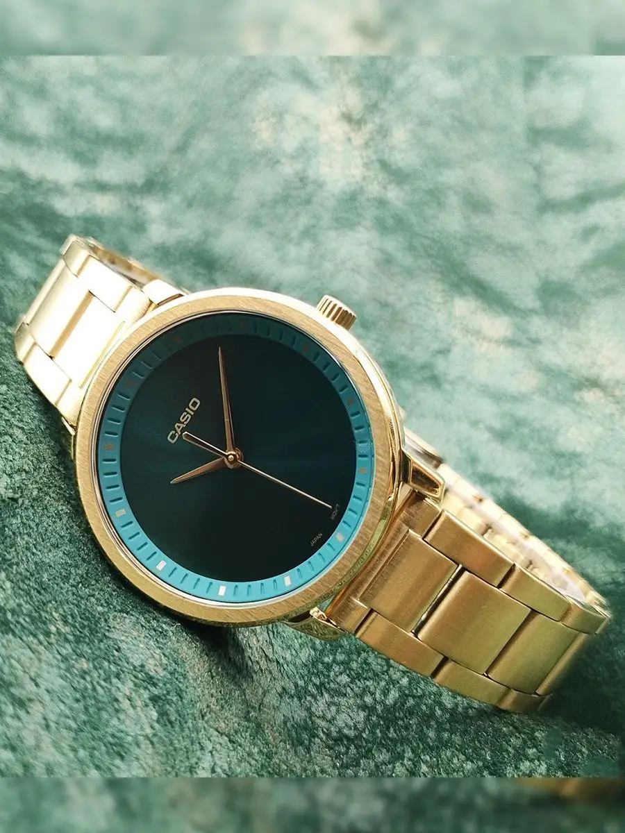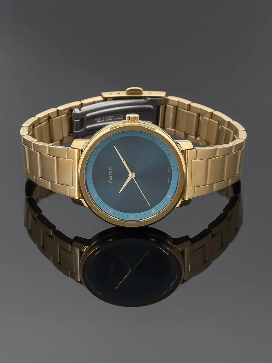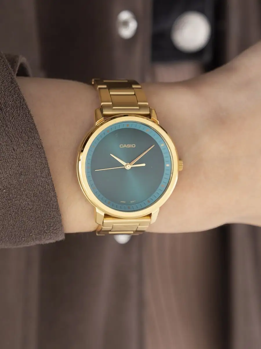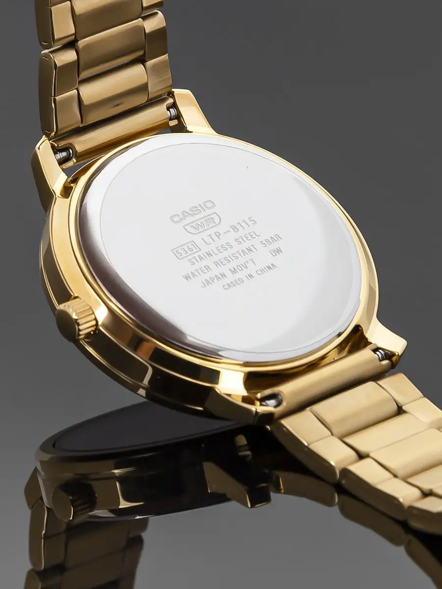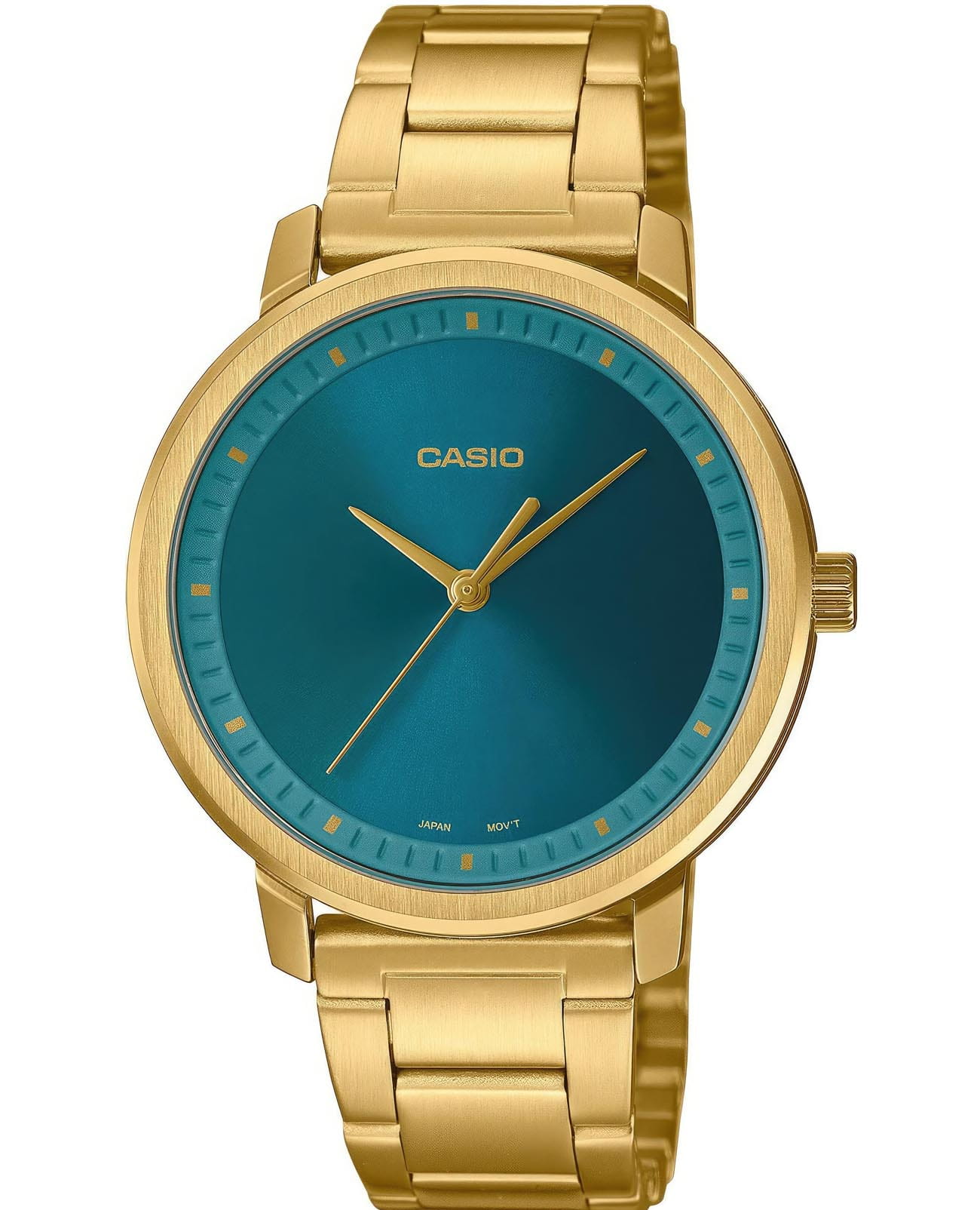 Японские женские часы Casio Collection LTP-B115G-3E с минеральным стекломМинеральное стеклоМинеральное стекло представляет собой искусственно выращенный минерал кварца. Такое стекло отличается особой устойчивостью к повреждениям и царапинам. Уступает по некоторым качествам сапфировому стеклу. изящно смотрятся на запястье, они привлекают классическим исполнением и правильной геометрией. Минималистичная модель станет отличным решением для любого случая: на работу, переговоры с деловыми партнёрами, прогулку с друзьями или праздничный вечер. Отсутствуют лишние детали, что позволяет часам быть актуальными на долгие годы. Корпус выполнен из нержавеющей стали с IP-покрытиемIP-покрытиеМетод ионного напыления. Демонстрирует повышенную устойчивость к истиранию, окислению и химическим веществам. Под воздействием высокого давления и температуры около 1500°C молекулы металла надёжно соединяются с частицами корпуса часов., отличающейся долговечностью и устойчивостью к повреждениям и царапинам. Браслет с раскладной застёжкойРаскладная застёжкаТакой тип застёжки используется только на браслетах из металла. Она никогда не раскрывается полностью, происходит разделение на 2 и более частей. Раскладывающая застёжка снизит вероятность потери часов к минимуму. с IP-покрытиемIP-покрытиеМетод ионного напыления. Демонстрирует повышенную устойчивость к истиранию, окислению и химическим веществам. Под воздействием высокого давления и температуры около 1500°C молекулы металла надёжно соединяются с частицами корпуса часов.. Модель комплектуется надёжным механизмом, точность хода которого составляет +/- 20 сек/мес. Водозащита: 50 метров, позволит защитить корпус от случайных брызг или капель дождя.