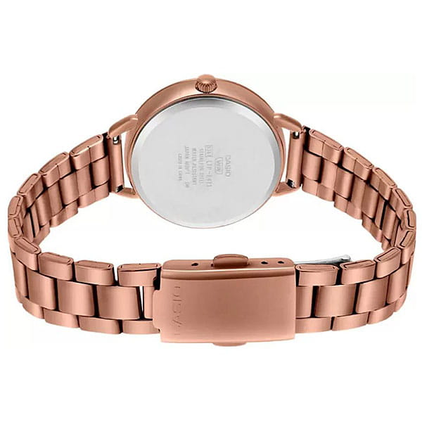 Японские женские часы LTP-E413PG-2A с минеральным стекломМинеральное стеклоМинеральное стекло представляет собой искусственно выращенный минерал кварца. Такое стекло отличается особой устойчивостью к повреждениям и царапинам. Уступает по некоторым качествам сапфировому стеклу. изящно смотрятся на запястье, они привлекают классическим исполнением и правильной геометрией. Минималистичная модель станет отличным решением для любого случая: на работу, переговоры с деловыми партнёрами, прогулку с друзьями или праздничный вечер. Отсутствуют лишние детали, что позволяет часам быть актуальными на долгие годы. Корпус выполнен из нержавеющей стали с PVD-покрытиемIP-покрытиеМетод ионного напыления. Демонстрирует повышенную устойчивость к истиранию, окислению и химическим веществам. Под воздействием высокого давления и температуры около 1500°C молекулы металла надёжно соединяются с частицами корпуса часов.. Браслет с раскладной застёжкойРаскладная застёжкаТакой тип застёжки используется только на браслетах из металла. Она никогда не раскрывается полностью, происходит разделение на 2 и более частей. Раскладывающая застёжка снизит вероятность потери часов к минимуму. с PVD-покрытиемIP-покрытиеМетод ионного напыления. Демонстрирует повышенную устойчивость к истиранию, окислению и химическим веществам. Под воздействием высокого давления и температуры около 1500°C молекулы металла надёжно соединяются с частицами корпуса часов.. Модель комплектуется надёжным механизмом, точность хода которого составляет +/- 20 сек/мес.Водозащита до 30 метров, позволит защитить корпус от случайных брызг или капель дождя/