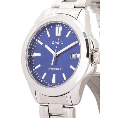 Мужские японские наручные часы Casio Collection MTP-1215A-2A2, кварцевый механизм с высокой точностью. Корпус часов изготовлен из нержавеющей стали. Стрелки и метки с люминесцентным покрытиемЛюминесцентное покрытиеПозволяет считывать показания времени в темноте. Производители наносят на стрелки, часовые индексы, безель или поверхность циферблата светонакопительный состав, дающий холодное свечение.. Окошко даты находится в положении 3 часа. Класс водозащиты: 30 метров, позволит защитить корпус от случайных брызг или капель дождя. Стальной браслет на раскладной застёжкеРаскладная застёжкаТакой тип застёжки используется только на браслетах из металла. Она никогда не раскрывается полностью, происходит разделение на 2 и более частей. Раскладывающая застёжка снизит вероятность потери часов к минимуму..