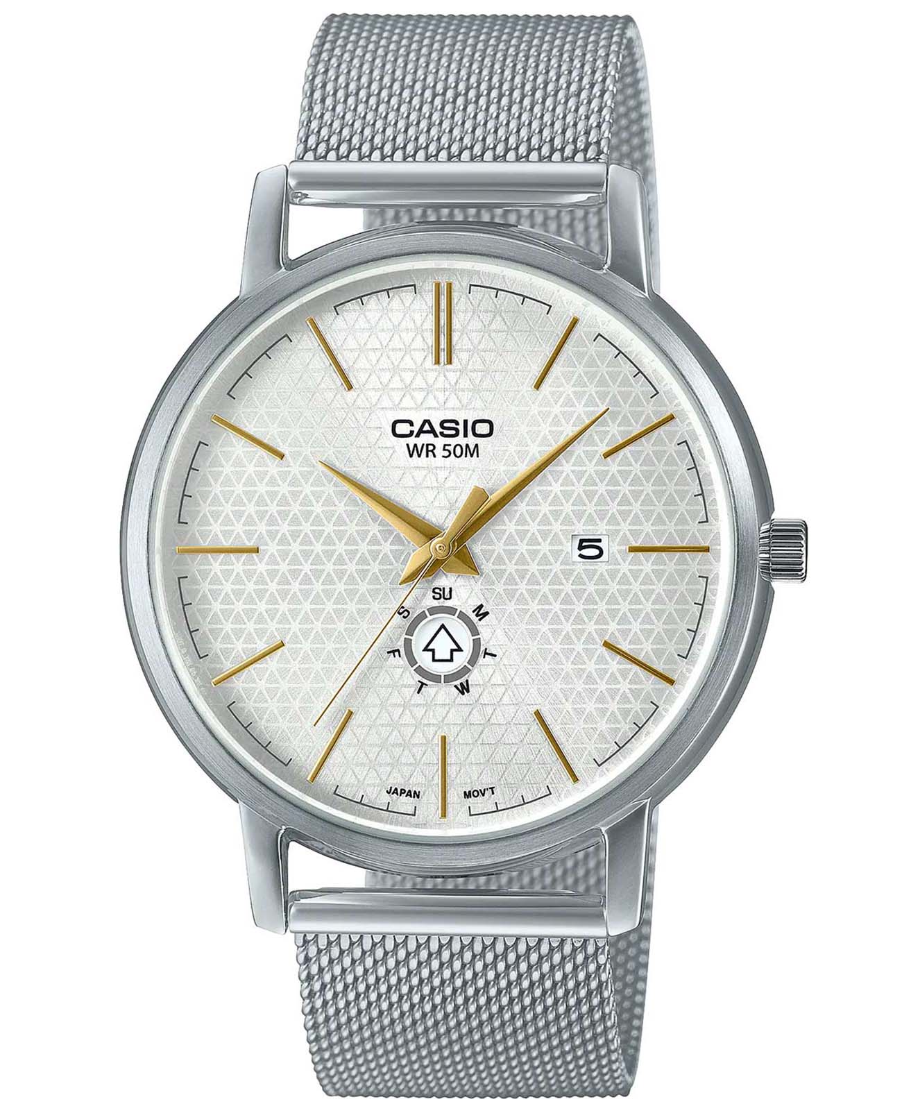 Японские мужские наручные часы Casio Collection MTP-B125M-7A, кварцевый механизм с высокой точностью. Отображение числа и дня недели. Класс водозащиты: 50 метров, позволит защитить корпус от случайных брызг или капель дождя. Корпус часов изготовлен из стали, серебристого цвета.