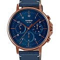 Японские мужские часы с минеральным стекломМинеральное стеклоМинеральное стекло представляет собой искусственно выращенный минерал кварца. Такое стекло отличается особой устойчивостью к повреждениям и царапинам. Уступает по некоторым качествам сапфировому стеклу. Casio Collection MTP-E321RL-2A, кварцевый механизм с высокой точностью. Корпус часов изготовлен из стали с IP-покрытиемIP-покрытиеМетод ионного напыления. Демонстрирует повышенную устойчивость к истиранию, окислению и химическим веществам. Под воздействием высокого давления и температуры около 1500°C молекулы металла надёжно соединяются с частицами корпуса часов.. 12-ти и 24-х часовой формат времени, число и день недели вынесены на отдельные циферблаты. Метки в виде штрихов и арабских цифр. Заводная головка с защитой. Батарейка рассчитана на 3 года. Класс водозащиты: 50 метров, позволит защитить корпус от случайных брызг или капель дождя. Кожаный ремешок на стандартной застёжке.