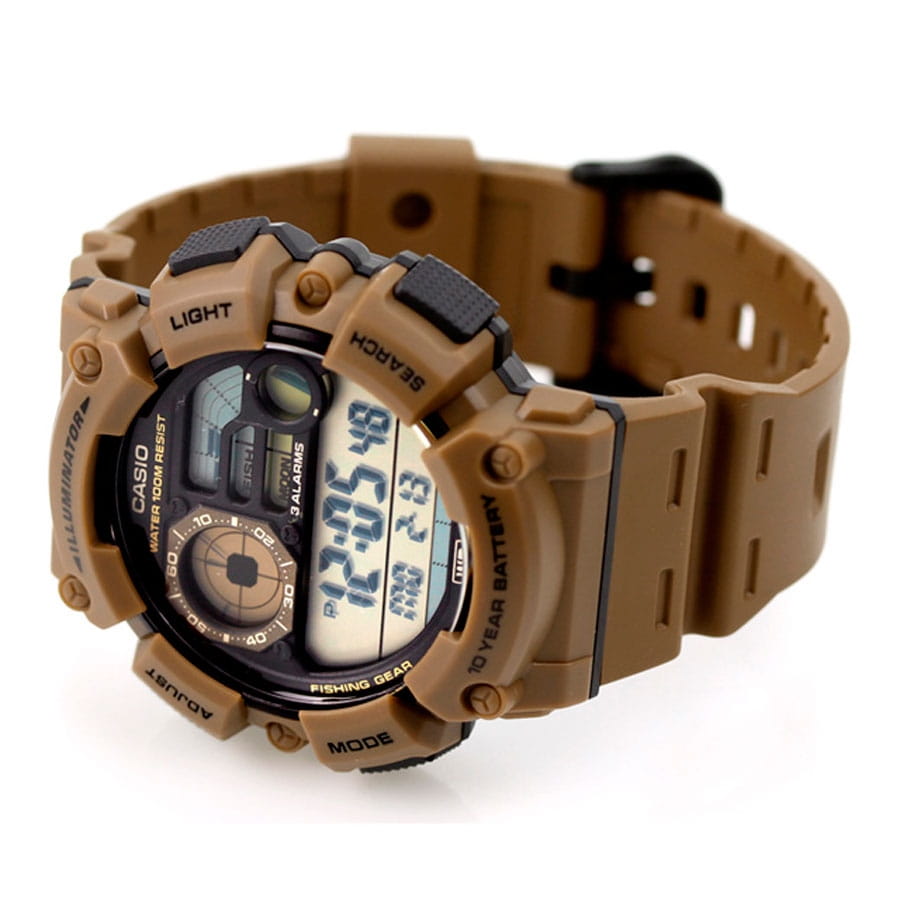 Японские мужские наручные часы Casio WS-1500H-5A c кварцевым механизмом высокой точности. Корпус часов изготовлен из полимерного пластика серебристого цвета. Функции: Мировое времяМировое время Полезное часовое усложнение, отображающее время в основных городах и известных областях по всему миру, оно связано с часовыми поясами, удобно для путешественников и бизнесменов. , светодиодная подсветкаСветодиодная подсветкаСветодиодная или LED-подсветка обеспечивает появление яркого холодного свечения за счёт LED-элементов - маленьких лампочек. Они потребляют минимальное количество энергии, чаще всего можно встретить 1 светодиод, в нижней части циферблата., секундомерСекундомерСекундоме́р — прибор, способный измерять интервалы времени с точностью до долей секунды., таймерТаймерОтсчитывает секунды в обратном направлении в заданном интервале времени., будильникБудильникБуди́льник — часы, в заданный момент времени подающие звуковой, световой и/или в редких случаях другой сигнал., автоматический календарь, 12/24 отображение времени. Продолжительное время работы аккумулятора - 10 лет. Органическое стекло, корпус и ремешок из полимерного пластика, водонепроницаемость 100 метров, позволит плавать, нырять и заниматься другими водными видами спорта