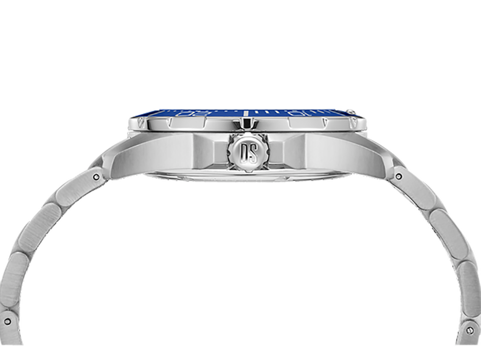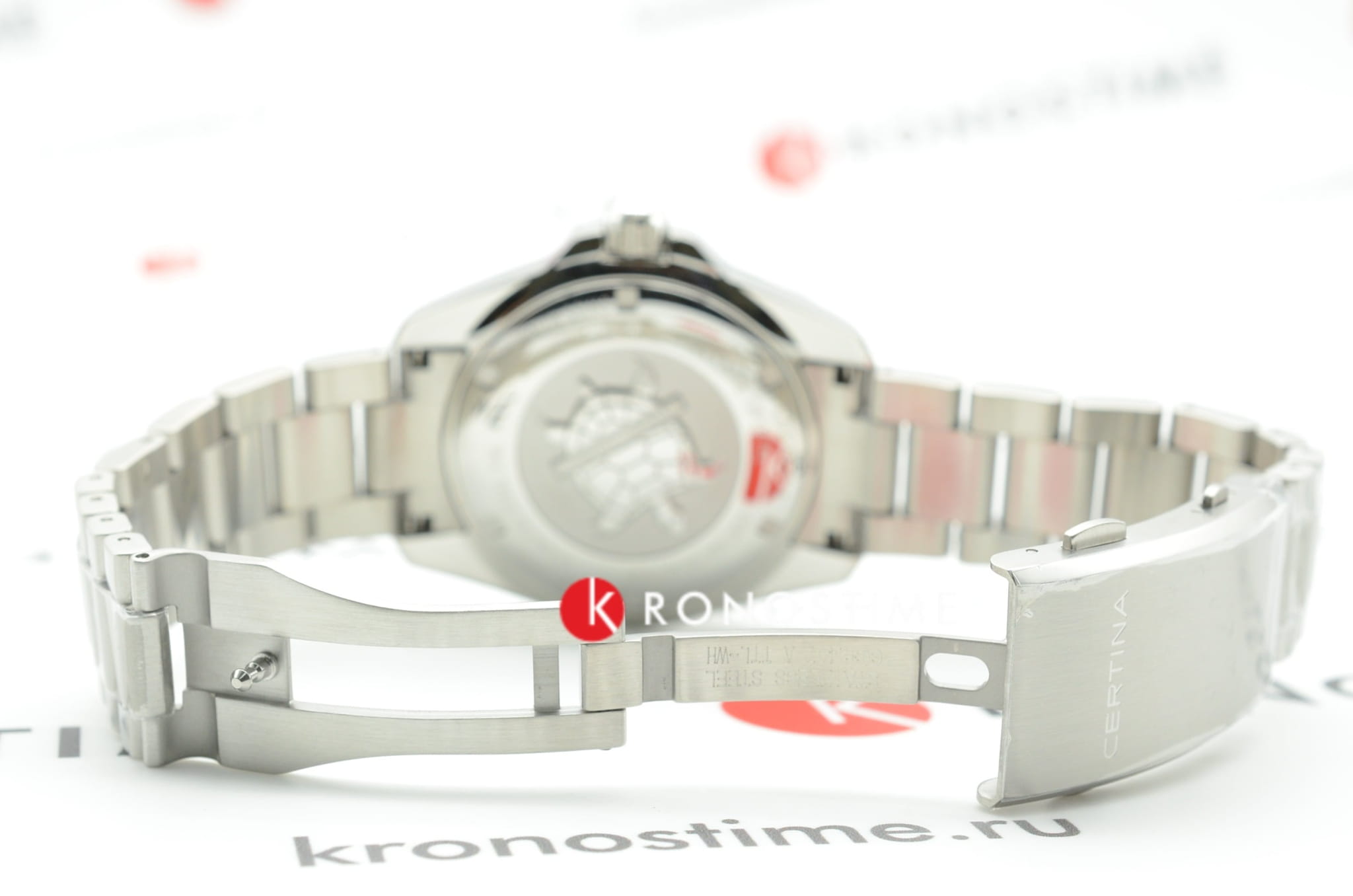 Серебристый аксессуар с синим циферблатом подходит для создания яркого акцента для делового образа. Красная секундная стрелка и крупные метки обеспечивают превосходную читаемость показаний времени. Автоподзавод. Швейцарский калибр ETA Powermatic 80Powermatic 80Эксклюзивный калибр от швейцарской компании ETA с увеличенным запасом хода до 80 часов за счёт удлинённой заводной пружины. Характеризуется улучшенной системой спуска со сниженным трением. с 80-часовым запасом хода. Реализация системы DS ConceptDS ConceptDouble Security Concept, обозначает двойную надёжность и безупречную точность часов Certina. Двойная система защиты подразумевает обеспечение максимальной устойчивости к ударам и высоких показателей водонепроницаемости.. Сапфировое стекло. Вращающийся безельБезельВнешний ободок, закрепляющий стекло. В спортивных часах так называется поворотное кольцо с делениями на циферблате, выполняет роль таймера – замеряет отрезки времени на шкале. Неподвижный безель – элемент декора. Однонаправленно вращающийся безель на дайверских часах позволяет фиксировать моменты погружения и выныривания на поверхность. из лёгкого алюминия. Водонепроницаемость 300 метров. Люминесцентная подсветкаЛюминесцентное покрытиеПозволяет считывать показания времени в темноте. Производители наносят на стрелки, часовые индексы, безель или поверхность циферблата светонакопительный состав, дающий холодное свечение.. Корпус и браслет из нержавеющей стали 316L. Застёжка с фиксатором и удлинением для дайверовУдлинение для дайверовЗастёжка с удлинением для дайверов представляет собой безопасное крепление, которое позволяет надевать часы поверх гидрокостюма. Гибкая застёжка удлиняется на 1-2 миллиметра.. Апертура даты. Диаметр корпуса: 43 мм.
