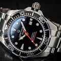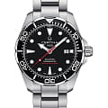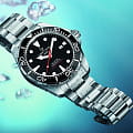 Стильный аксессуар воплощает собой дайверскую тематику, он способен сохранять водостойкость при давлении до 30 бар. Лаконично выглядит чёрный циферблат с красной секундной стрелкой в сочетании с серебристым блеском нержавеющей стали, из которой изготовлены ударопрочный корпусУдаропрочный корпусМеханизм заключён в корпус, выполненный из современных материалов, устойчивых к ударам, механическим повреждениям и падению с высоты: инновационный пластик, карбон, нержавеющая сталь, титан. и браслет. Наручные часы оснащены швейцарским механизмом ETA Powermatic 80Powermatic 80Эксклюзивный калибр от швейцарской компании ETA с увеличенным запасом хода до 80 часов за счёт удлинённой заводной пружины. Характеризуется улучшенной системой спуска со сниженным трением. с 80-часовым запасом хода. Завинчивающаяся заводная головка с системой защиты. Антибликовое покрытие сапфирового стекла. Люминесцентная подсветкаЛюминесцентное покрытиеПозволяет считывать показания времени в темноте. Производители наносят на стрелки, часовые индексы, безель или поверхность циферблата светонакопительный состав, дающий холодное свечение. стрелок и меток. Надёжная застежка с фиксатором и удлинением для дайверовУдлинение для дайверовЗастёжка с удлинением для дайверов представляет собой безопасное крепление, которое позволяет надевать часы поверх гидрокостюма. Гибкая застёжка удлиняется на 1-2 миллиметра.. Однонаправленно вращающийся алюминиевый безельБезельВнешний ободок, закрепляющий стекло. В спортивных часах так называется поворотное кольцо с делениями на циферблате, выполняет роль таймера – замеряет отрезки времени на шкале. Неподвижный безель – элемент декора. Однонаправленно вращающийся безель на дайверских часах позволяет фиксировать моменты погружения и выныривания на поверхность.. Диаметр корпуса: 43 мм.