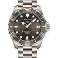 Наручные часы представляют собой настоящий шедевр, безупречно всё: от продуманного дизайна до высокого качества исполнения. Модель выполнена из титана, отличающегося устойчивостью к воздействию магнитных полей и морской воды. Швейцарский кварцевый механизм ETA F07.411 Precidrive™Precidrive™Инновационный кварцевый механизм Certina. Часы, оснащённые этим швейцарским калибром, приравниваются к точности к сертифицированным хронометрам, точность хода составляет +/-10 секунд в год. демонстрирует максимальную точность хода. Сапфировое стекло с антибликовой поверхностью. Односторонне вращающийся безельБезельВнешний ободок, закрепляющий стекло. В спортивных часах так называется поворотное кольцо с делениями на циферблате, выполняет роль таймера – замеряет отрезки времени на шкале. Неподвижный безель – элемент декора. Однонаправленно вращающийся безель на дайверских часах позволяет фиксировать моменты погружения и выныривания на поверхность.. Реализация концепции Double SecurityDS ConceptDouble Security Concept, обозначает двойную надёжность и безупречную точность часов Certina. Двойная система защиты подразумевает обеспечение максимальной устойчивости к ударам и высоких показателей водонепроницаемости.. Водонепроницаемость при давлении до 30 бар. Застёжка с фиксатором и удлинением для дайверовУдлинение для дайверовЗастёжка с удлинением для дайверов представляет собой безопасное крепление, которое позволяет надевать часы поверх гидрокостюма. Гибкая застёжка удлиняется на 1-2 миллиметра.. Яркая люминесцентная подсветкаЛюминесцентное покрытиеПозволяет считывать показания времени в темноте. Производители наносят на стрелки, часовые индексы, безель или поверхность циферблата светонакопительный состав, дающий холодное свечение.. Окошко даты, индикатор EOLEOLПредставляет собой систему, уведомляющую владельца часов о необходимости замены элемента питания. За 2 недели до полного разряда батарейки секундная стрелка перестаёт ходить чётко и начинает перепрыгивать на 3-4 деления.. Диаметр корпуса: 41 мм.