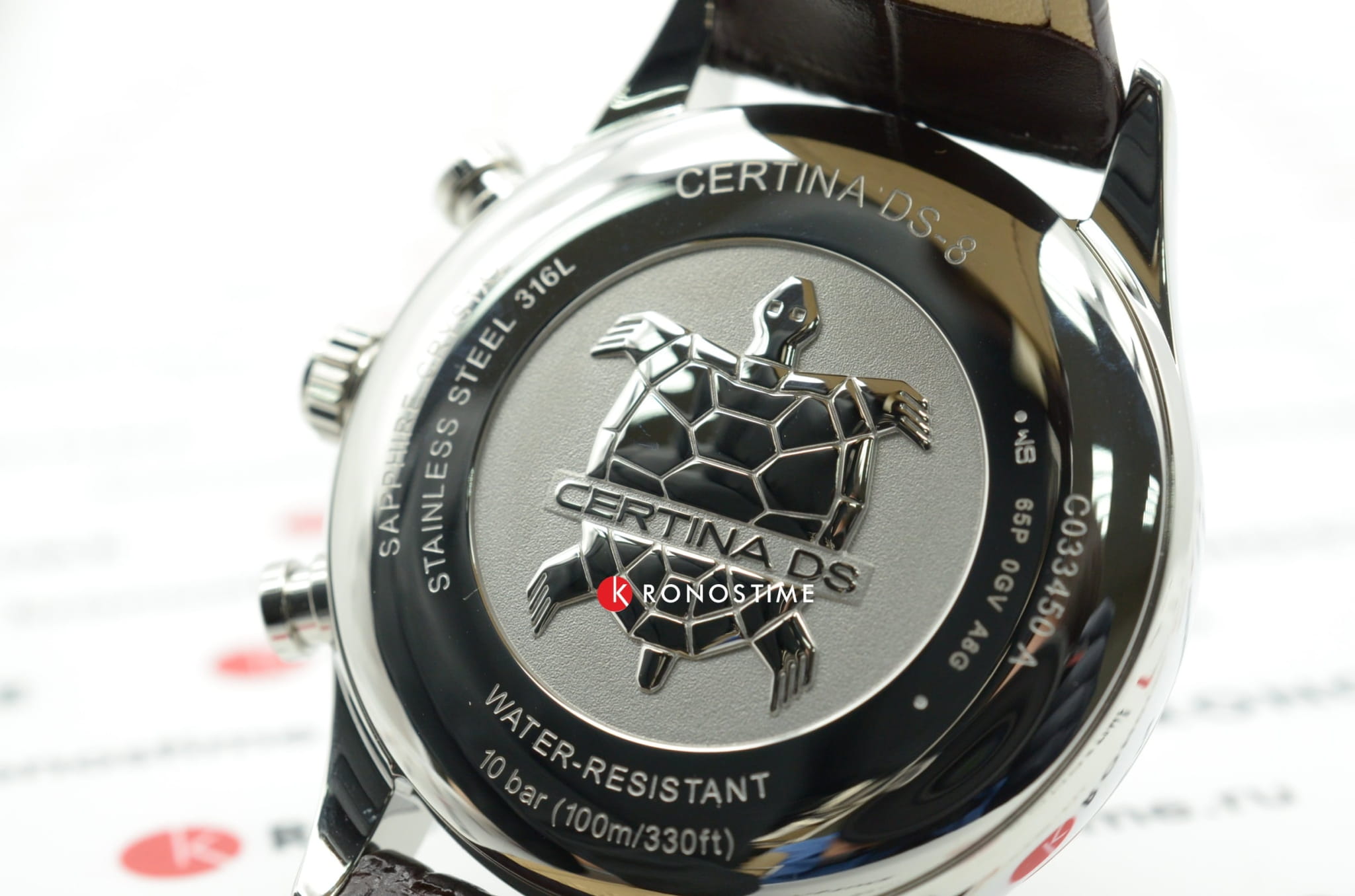 Модель, благодаря классической цветовой гамме и отсутствию броских деталей, станет универсальным аксессуаром к вашему образу. Брендовый хронографХронографФункция позволяет измерять отрезки времени с особой точностью: часы, минуты, секунды. Верным признаком хронографа является наличие на циферблате 3 дополнительных окошек-счётчиков. измеряет время с высокой точностью, что обеспечивает швейцарский кварцевый калибр ETA G10.962 Precidrive™Precidrive™Инновационный кварцевый механизм Certina. Часы, оснащённые этим швейцарским калибром, приравниваются к точности к сертифицированным хронометрам, точность хода составляет +/-10 секунд в год.. Коричневый ремешок из натуральной кожи. Сапфировое стекло с двухсторонним антибликовым покрытием. Корпус из нержавеющей стали 316L. Водостойкость 10 бар. Люминесцентная подсветкаЛюминесцентное покрытиеПозволяет считывать показания времени в темноте. Производители наносят на стрелки, часовые индексы, безель или поверхность циферблата светонакопительный состав, дающий холодное свечение.. Задняя крышка с гравировкой. Секундомер, дата, индикатор EOLEOLПредставляет собой систему, уведомляющую владельца часов о необходимости замены элемента питания. За 2 недели до полного разряда батарейки секундная стрелка перестаёт ходить чётко и начинает перепрыгивать на 3-4 деления., отображение лунных фаз. Диаметр корпуса: 41 мм.