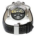 Брендовый аксессуар показывает время с абсолютной точностью благодаря швейцарскому автоматическому механизму ETA C01.211 с запасом хода на 40 часов. Ремешок выполнен из натуральной кожи, для изготовления корпуса выбрали сталь 316L. Стрелки и метки дополнены люминесцентной подсветкойЛюминесцентное покрытиеПозволяет считывать показания времени в темноте. Производители наносят на стрелки, часовые индексы, безель или поверхность циферблата светонакопительный состав, дающий холодное свечение.. Функции: секундомер, календарь, тахиметрТахиметрРазмеченная шкала, располагается на ободке или безеле часов. Тахиметр позволяет рассчитать скорость на определённом участке пути, расстояние измеряется в километрах или милях..
