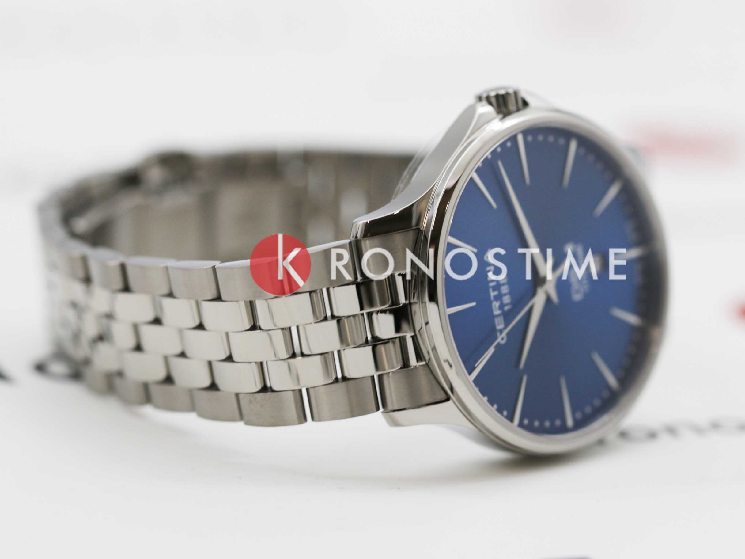 Швейцарские кварцевые мужские часы Certina DS-8 Gent C045.410.44.041.00 — это воплощение элегантности, прочности и точности. Модель выполнена из титана — лёгкого и гипоаллергенного материала, устойчивого к коррозии и повреждениям, что делает часы комфортными в носке и долговечными. Часы оснащены механизмом калибра ETA F05.412, обеспечивающим высокую точность хода, а также функцией индикатора разряда батареиEOLПредставляет собой систему, уведомляющую владельца часов о необходимости замены элемента питания. За 2 недели до полного разряда батарейки секундная стрелка перестаёт ходить чётко и начинает перепрыгивать на 3-4 деления., которая своевременно предупредит о необходимости замены элемента питания. На циферблате синего цвета чётко выделяются белые стрелки и метки, что гарантирует отличную читаемость. Окошко даты размещено в положении 3 часов, дополняя функциональность модели. Защиту циферблата обеспечивает сапфировое стеклоСапфировое стеклоПрочный и надёжный материал из кристалла сапфира синтетического происхождения, характеризующийся особой твёрдостью и устойчивостью к царапинам и повреждениям. с антибликовым покрытиемАнтибликовое покрытиеСлой оксида металла в 0,13-0,3 микрон, благодаря которому стекло часов не бликует и не отражает свет. Антибликовое покрытие уменьшает отражение света в 10 раз, обеспечивая отличную читаемость показателей циферблата., устойчивое к царапинам и обеспечивающее комфортное считывание информации при любом освещении. Завинчивающаяся заводная головка защищаетУдаропрочный корпусМеханизм заключён в корпус, выполненный из современных материалов, устойчивых к ударам, механическим повреждениям и падению с высоты: инновационный пластик, карбон, нержавеющая сталь, титан. механизм от случайных повреждений и пыли. Часы обладают водонепроницаемостью , что позволяет использовать их при плавании и других водных активностях. Толщина корпуса составляет 10,35 мм, а его диаметр — 40 мм, что делает модель идеально сбалансированной на запястье. Браслет из титана дополнен застёжкой-бабочкой с кнопкамиЗастёжка "бабочка"Такой вид застёжки дополняется предохранителями, помогающими избежать случайного раскрытия браслета. Обладают изящным исполнением. , обеспечивающей комфорт и уверенную фиксацию на руке. Такое сочетание материалов и дизайна подчёркивает строгий и современный стиль модели. Эти часы станут универсальным аксессуаром для тех, кто ценит точность, качество и лаконичный дизайн — идеальный выбор для уверенных в себе мужчин, следящих за своим образом и статусом.