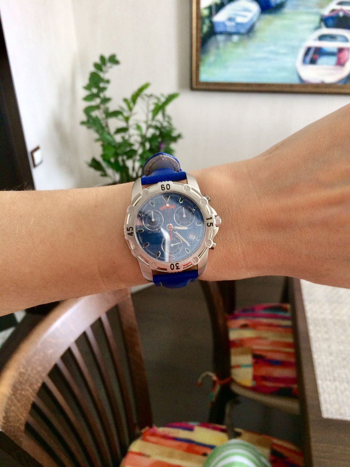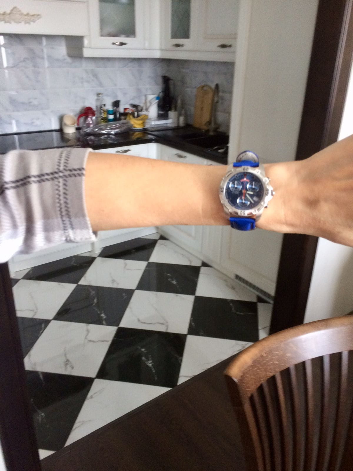 Стильный и яркий мужской хронограф для девушки. Заметны окружающими примерно с 30 метров!