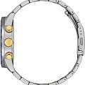 Citizen Chronograph AN3684-59L часы-хронографХронографФункция позволяет измерять отрезки времени с особой точностью: часы, минуты, секунды. Верным признаком хронографа является наличие на циферблате 3 дополнительных окошек-счётчиков. с секундомеромСекундомерСекундоме́р — прибор, способный измерять интервалы времени с точностью до долей секунды. спортивного дизайна с высоким уровнем водозащиты. Корпус из нержавеющей стали диаметром 44 мм идеально сбалансирован. Минеральное стеклоМинеральное стеклоМинеральное стекло представляет собой искусственно выращенный минерал кварца. Такое стекло отличается особой устойчивостью к повреждениям и царапинам. Уступает по некоторым качествам сапфировому стеклу. обеспечивает отличную защиту циферблата от царапин. Часы работают на основе кварцевого механизма. Стальной браслет на раскладной застёжкеРаскладная застёжкаТакой тип застёжки используется только на браслетах из металла. Она никогда не раскрывается полностью, происходит разделение на 2 и более частей. Раскладывающая застёжка снизит вероятность потери часов к минимуму. с частичным IP-покрытиемIP-покрытиеМетод ионного напыления. Демонстрирует повышенную устойчивость к истиранию, окислению и химическим веществам. Под воздействием высокого давления и температуры около 1500°C молекулы металла надёжно соединяются с частицами корпуса часов. идеально дополняют дизайн часов, обеспечивая комфортное ношение. Стрелки и метки на циферблате имеют люминесцентное покрытиеЛюминесцентное покрытиеПозволяет считывать показания времени в темноте. Производители наносят на стрелки, часовые индексы, безель или поверхность циферблата светонакопительный состав, дающий холодное свечение. позволяющее легко определять время даже в темноте. БезельБезельВнешний ободок, закрепляющий стекло. В спортивных часах так называется поворотное кольцо с делениями на циферблате, выполняет роль таймера – замеряет отрезки времени на шкале. Неподвижный безель – элемент декора. Однонаправленно вращающийся безель на дайверских часах позволяет фиксировать моменты погружения и выныривания на поверхность. с IP-покрытиемIP-покрытиеМетод ионного напыления. Демонстрирует повышенную устойчивость к истиранию, окислению и химическим веществам. Под воздействием высокого давления и температуры около 1500°C молекулы металла надёжно соединяются с частицами корпуса часов. и шкалой тахиметраТахиметрРазмеченная шкала, располагается на ободке или безеле часов. Тахиметр позволяет рассчитать скорость на определённом участке пути, расстояние измеряется в километрах или милях.. Секундомер с точностью 1с и временем измерения 12ч отображается центральной стрелкой. Окошко даты находится в положении 3 часа. Циферблат с метками в виде штрихов выполнен по технологии Sunray (солнечные лучи). Часы обладают впечатляющей водонепроницаемостью до 100WR, что делает их идеальными для повседневной носки.