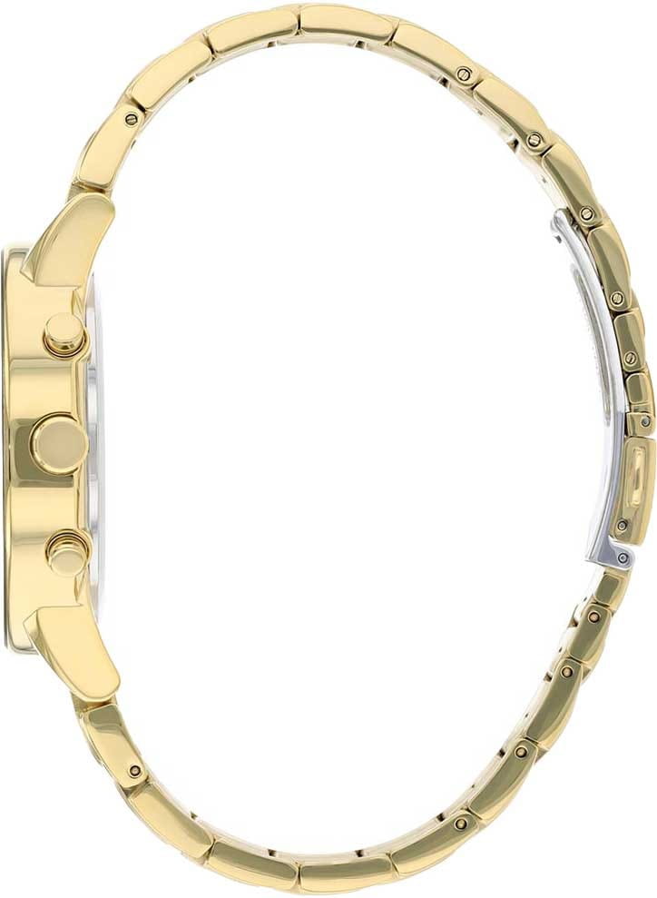 Японские наручные часы Citizen AT2242-55E сочетают в себе современный стиль и расширенные функциональные возможности. Модель выполнена в прочном корпусе из нержавеющей стали с золотистым IP-покрытиемIP-покрытиеМетод ионного напыления. Демонстрирует повышенную устойчивость к истиранию, окислению и химическим веществам. Под воздействием высокого давления и температуры около 1500°C молекулы металла надёжно соединяются с частицами корпуса часов. диаметром 43 мм и дополнена золотистым стальным браслетом с удобной раскладной застёжкойРаскладная застёжкаТакой тип застёжки используется только на браслетах из металла. Она никогда не раскрывается полностью, происходит разделение на 2 и более частей. Раскладывающая застёжка снизит вероятность потери часов к минимуму.. Черный циферблат оформлен лаконичными метками в виде штрихов, а окошко даты расположено в положении 4 часа для удобного считывания информации. Часы оснащены высокоточным кварцевым механизмом Citizen H504 с функцией хронографаХронографФункция позволяет измерять отрезки времени с особой точностью: часы, минуты, секунды. Верным признаком хронографа является наличие на циферблате 3 дополнительных окошек-счётчиков., позволяющей использовать секундомерСекундомерСекундоме́р — прибор, способный измерять интервалы времени с точностью до долей секунды. с точностью до 1 секунды и максимальным временем измерения до 1 часа. Предусмотрены 12- и 24-часовые форматы отображения времени. Благодаря инновационной системе Eco-Drive часы работают от солнечной энергии и не требуют замены батарейки, обеспечивая запас хода до 150 дней, а также оснащены функциями индикации заряда и предотвращения перезарядки. Минеральное стеклоМинеральное стеклоМинеральное стекло представляет собой искусственно выращенный минерал кварца. Такое стекло отличается особой устойчивостью к повреждениям и царапинам. Уступает по некоторым качествам сапфировому стеклу. надежно защищает циферблат от царапин, а водозащита 30WR позволяет не беспокоиться о случайных брызгах воды. Вес модели составляет 156 грамм, браслет шириной 23 мм и длиной 206,4 мм обеспечивает комфортное ношение. Эти часы станут отличным выбором для тех, кто ценит надежность, стиль и технологичность.