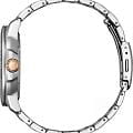 Часы Citizen AW1524-84E – это стильная и надежная модель японского производства, идеально подходящая для активного образа жизни. Корпус выполнен из высококачественной нержавеющей стали, в то время как на безельБезельВнешний ободок, закрепляющий стекло. В спортивных часах так называется поворотное кольцо с делениями на циферблате, выполняет роль таймера – замеряет отрезки времени на шкале. Неподвижный безель – элемент декора. Однонаправленно вращающийся безель на дайверских часах позволяет фиксировать моменты погружения и выныривания на поверхность. нанесено черное PVD-покрытиеPVDУльтратонкое покрытие наносится в технике вакуумного напыления, сочетает в себе нитрид титана особой прочности со слоем золота или оксида хрома. Несёт в себе декоративную или защитную функцию., браслет также стальной с элегантными вставками PVD-покрытияPVDУльтратонкое покрытие наносится в технике вакуумного напыления, сочетает в себе нитрид титана особой прочности со слоем золота или оксида хрома. Несёт в себе декоративную или защитную функцию. оттенка розового золота. Черный циферблат украшен метками в виде штрихов и оснащен календарем с окошком даты. Защиту от повреждений обеспечивает прочное минеральное стеклоМинеральное стеклоМинеральное стекло представляет собой искусственно выращенный минерал кварца. Такое стекло отличается особой устойчивостью к повреждениям и царапинам. Уступает по некоторым качествам сапфировому стеклу., а водонепроницаемость до 100 метров позволяет не снимать часы во время плавания и занятий спортом. Внутри установлен надежный кварцевый механизм Citizen J810 с инновационной системой Eco-Drive, которая питается от солнечной энергии и не требует замены батарейки, обеспечивая запас хода до 240 дней. Стрелки и часовые метки с люминесцентным покрытиемЛюминесцентное покрытиеПозволяет считывать показания времени в темноте. Производители наносят на стрелки, часовые индексы, безель или поверхность циферблата светонакопительный состав, дающий холодное свечение. обеспечивают отличную читаемость даже в темноте. Функция индикации заряда EOLEOLПредставляет собой систему, уведомляющую владельца часов о необходимости замены элемента питания. За 2 недели до полного разряда батарейки секундная стрелка перестаёт ходить чётко и начинает перепрыгивать на 3-4 деления. подскажет, когда потребуется подзарядка. Корпус диаметром 45,9 мм, толщина 11,8 мм, ширина браслета 22 мм, вес модели составляет 160 граммов. Завинчивающаяся задняя крышка украшена фирменной гравировкой Eco-Drive, а заводная головка оснащена защитой. Надежная раскладная застёжкаРаскладная застёжкаТакой тип застёжки используется только на браслетах из металла. Она никогда не раскрывается полностью, происходит разделение на 2 и более частей. Раскладывающая застёжка снизит вероятность потери часов к минимуму. браслета с системой блокировки гарантирует комфортное и безопасное ношение.