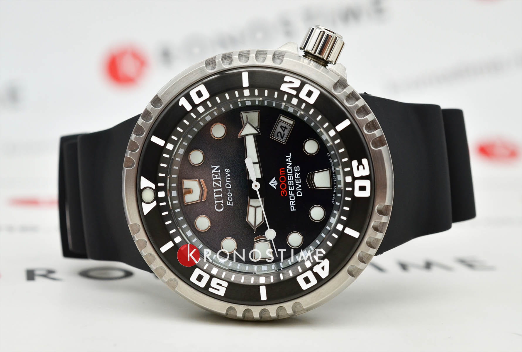 Мужские часы Citizen Promaster BN1024-01E спортивного дизайна с высоким уровнем водозащиты. Корпус из нержавеющей стали диаметром 46 мм идеально сбалансирован. Сапфировое стеклоСапфировое стеклоПрочный и надёжный материал из кристалла сапфира синтетического происхождения, характеризующийся особой твёрдостью и устойчивостью к царапинам и повреждениям. с антибликовым покрытием обеспечивает отличную защиту циферблата от царапин. Часы работают на основе кварцевого механизма, функция Eco-Drive (заряжается от любого источника света, не требующей замены батарейки). Каучуковый ремешок на стандартной застёжке идеально дополняют дизайн часов, обеспечивая комфортное ношение. Стрелки и метки на циферблате имеют люминесцентное покрытиеЛюминесцентное покрытиеПозволяет считывать показания времени в темноте. Производители наносят на стрелки, часовые индексы, безель или поверхность циферблата светонакопительный состав, дающий холодное свечение. позволяющее легко определять время даже в темноте. БезельБезельВнешний ободок, закрепляющий стекло. В спортивных часах так называется поворотное кольцо с делениями на циферблате, выполняет роль таймера – замеряет отрезки времени на шкале. Неподвижный безель – элемент декора. Однонаправленно вращающийся безель на дайверских часах позволяет фиксировать моменты погружения и выныривания на поверхность. с IP-покрытиемIP-покрытиеМетод ионного напыления. Демонстрирует повышенную устойчивость к истиранию, окислению и химическим веществам. Под воздействием высокого давления и температуры около 1500°C молекулы металла надёжно соединяются с частицами корпуса часов. вращается в одном направлении. Функция индикации заряда (EOL) и предотвращения перезарядки. Окошко даты находится в положении 4 часа. Часы обладают впечатляющей водонепроницаемостью до 300WR, что делает их идеальными для плавания, ныряния и погружений с аквалангом.