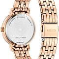 Часы Citizen EL3108-53D представляют собой элегантную модель, выполненную в Японии, сочетающую в себе современные технологии и утончённый дизайн. Корпус и браслет изготовлены из прочной нержавеющей стали с золотистым IP-покрытиемIP-покрытиеМетод ионного напыления. Демонстрирует повышенную устойчивость к истиранию, окислению и химическим веществам. Под воздействием высокого давления и температуры около 1500°C молекулы металла надёжно соединяются с частицами корпуса часов., что обеспечивает долговечность и привлекательный внешний вид. Диаметр корпуса составляет 31 мм, а толщина — всего 7 мм, что делает часы изящными и аккуратными на запястье. Особое внимание привлекает безельБезельВнешний ободок, закрепляющий стекло. В спортивных часах так называется поворотное кольцо с делениями на циферблате, выполняет роль таймера – замеряет отрезки времени на шкале. Неподвижный безель – элемент декора. Однонаправленно вращающийся безель на дайверских часах позволяет фиксировать моменты погружения и выныривания на поверхность., украшенный мерцающими кристаллами, которые придают часам особый шарм и изысканность. Надёжный кварцевый механизм гарантирует точность хода, а водозащита уровня WR 50 позволяет не снимать часы при мытье рук или во время дождя. Перламутровый циферблат украшен часовыми индексами в виде точек и цифр, а также оснащён центральными стрелками часов, минут и секунд для удобного считывания времени и кристаллами. Минеральное стеклоМинеральное стеклоМинеральное стекло представляет собой искусственно выращенный минерал кварца. Такое стекло отличается особой устойчивостью к повреждениям и царапинам. Уступает по некоторым качествам сапфировому стеклу. устойчиво к появлению мелких царапин, сохраняя прозрачность и презентабельный вид. Стальной браслет с золотистым IP-покрытиемIP-покрытиеМетод ионного напыления. Демонстрирует повышенную устойчивость к истиранию, окислению и химическим веществам. Под воздействием высокого давления и температуры около 1500°C молекулы металла надёжно соединяются с частицами корпуса часов. и раскладной застёжкойРаскладная застёжкаТакой тип застёжки используется только на браслетах из металла. Она никогда не раскрывается полностью, происходит разделение на 2 и более частей. Раскладывающая застёжка снизит вероятность потери часов к минимуму. надежно фиксирует часы на запястье, обеспечивая комфорт при ежедневном ношении.