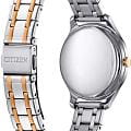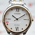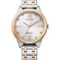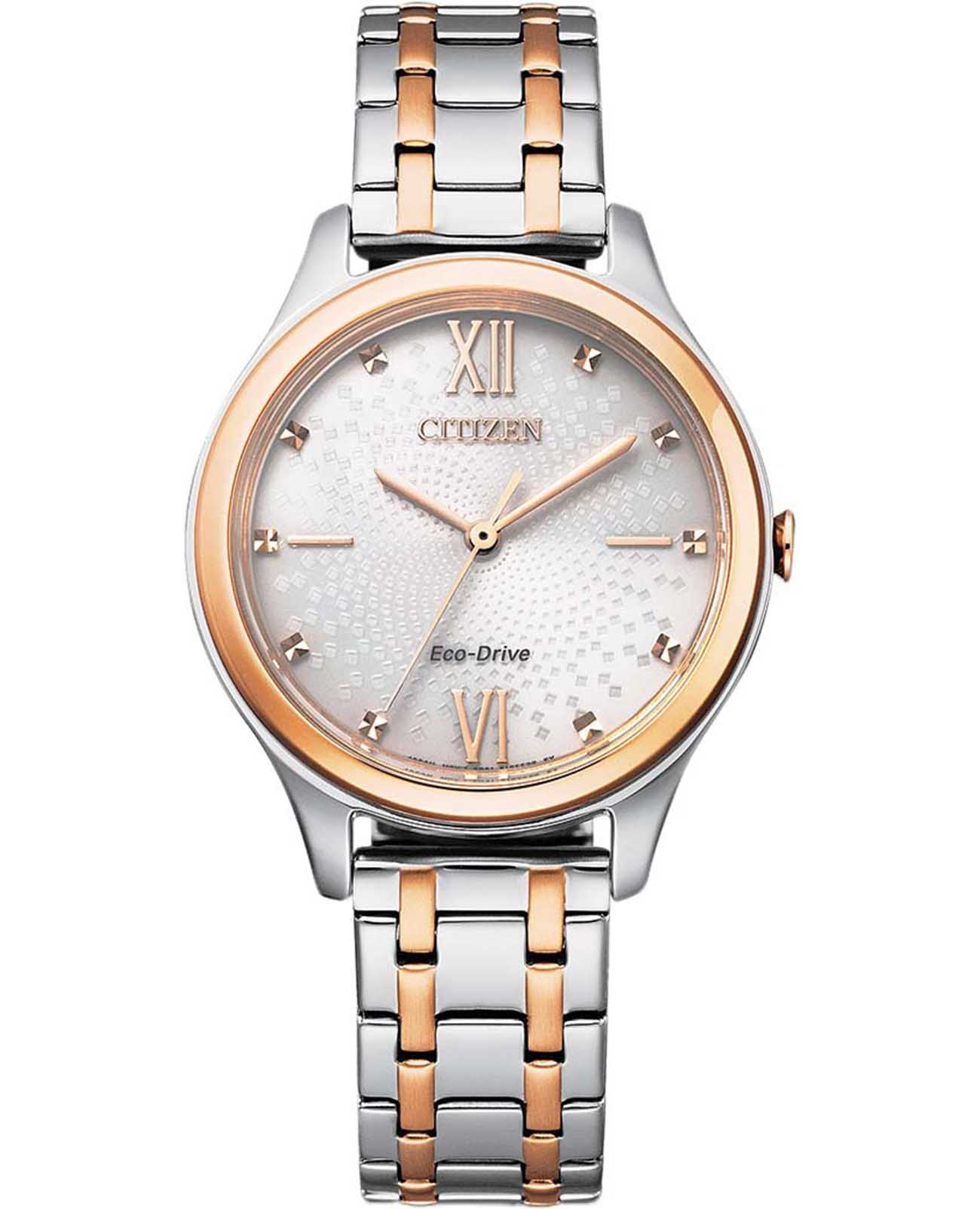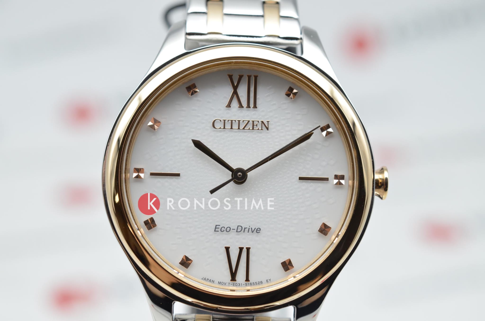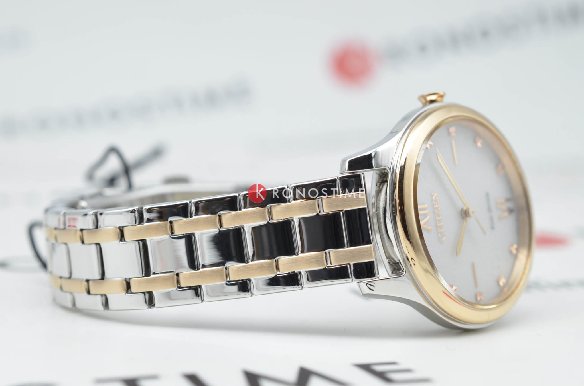 Часы Citizen EM0506-77A— это стильная модель, сочетающая в себе утонченную классику и современные технологии. Корпус изготовлен из прочной нержавеющей стали, а безельБезельВнешний ободок, закрепляющий стекло. В спортивных часах так называется поворотное кольцо с делениями на циферблате, выполняет роль таймера – замеряет отрезки времени на шкале. Неподвижный безель – элемент декора. Однонаправленно вращающийся безель на дайверских часах позволяет фиксировать моменты погружения и выныривания на поверхность. и браслет (частично) с золотистым IP-покрытиемIP-покрытиеМетод ионного напыления. Демонстрирует повышенную устойчивость к истиранию, окислению и химическим веществам. Под воздействием высокого давления и температуры около 1500°C молекулы металла надёжно соединяются с частицами корпуса часов., что обеспечивает не только износостойкость, но и элегантный внешний вид. Белый циферблат отличается кристаллами и лаконичным оформлением и защищён надёжным минеральным стекломМинеральное стеклоМинеральное стекло представляет собой искусственно выращенный минерал кварца. Такое стекло отличается особой устойчивостью к повреждениям и царапинам. Уступает по некоторым качествам сапфировому стеклу., устойчивым к царапинам. Часы оснащены инновационной системой Eco-Drive, которая позволяет заряжаться от любого источника света и не требует замены батарейки, а запас энергии составляет до 180 дней. Механизм Citizen E031 гарантирует точность хода, а функция индикации заряда EOLEOLПредставляет собой систему, уведомляющую владельца часов о необходимости замены элемента питания. За 2 недели до полного разряда батарейки секундная стрелка перестаёт ходить чётко и начинает перепрыгивать на 3-4 деления. своевременно подскажет о необходимости подзарядки. Водозащита до 50 метров обеспечивает дополнительную практичность и защищает механизм от влаги при повседневном использовании. Браслет шириной 14 мм и длиной 143 мм удобно фиксируется на запястье с помощью раскладной застёжкиРаскладная застёжкаТакой тип застёжки используется только на браслетах из металла. Она никогда не раскрывается полностью, происходит разделение на 2 и более частей. Раскладывающая застёжка снизит вероятность потери часов к минимуму. с системой блокировки, что обеспечивает надёжность и комфорт в течение всего дня. Диаметр корпуса составляет 32 мм, а толщина — 7,6 мм, благодаря чему часы выглядят изящно и подходят для любого случая. Citizen