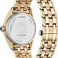 Часы Citizen EM1143-81X созданы для тех, кто ценит изящество и передовые технологии. Модель выполнена в Японии и оснащена кварцевым механизмом Citizen E031 с инновационной системой Eco-Drive, которая обеспечивает питание от солнечной энергии и не требует замены батарейки. Запаса энергии хватает на 180 дней, а функция индикации заряда и система предотвращения перезарядки гарантируют стабильную работу. Корпус диаметром 33 мм и толщиной 8,7 мм изготовлен из высококачественной стали с золотистым IP-покрытиемIP-покрытиеМетод ионного напыления. Демонстрирует повышенную устойчивость к истиранию, окислению и химическим веществам. Под воздействием высокого давления и температуры около 1500°C молекулы металла надёжно соединяются с частицами корпуса часов., а белый циферблат с римскими цифрами и штрихами придает часам утончённый вид. Сапфировое стеклоСапфировое стеклоПрочный и надёжный материал из кристалла сапфира синтетического происхождения, характеризующийся особой твёрдостью и устойчивостью к царапинам и повреждениям. надежно защищает циферблат от царапин и повреждений. Заводная головка украшена камнем в форме кабошона, что добавляет особого шарма аксессуару. Стальной браслет с золотистым IP-покрытиемIP-покрытиеМетод ионного напыления. Демонстрирует повышенную устойчивость к истиранию, окислению и химическим веществам. Под воздействием высокого давления и температуры около 1500°C молекулы металла надёжно соединяются с частицами корпуса часов. с удобной застежкой «бабочка»Застёжка "бабочка"Такой вид застёжки дополняется предохранителями, помогающими избежать случайного раскрытия браслета. Обладают изящным исполнением. обеспечивает комфортную посадку на запястье. Водозащита уровня 50WR позволяет использовать часы в повседневной жизни, не опасаясь попадания влаги. Эта модель станет стильным и надежным дополнением к вашему образу.