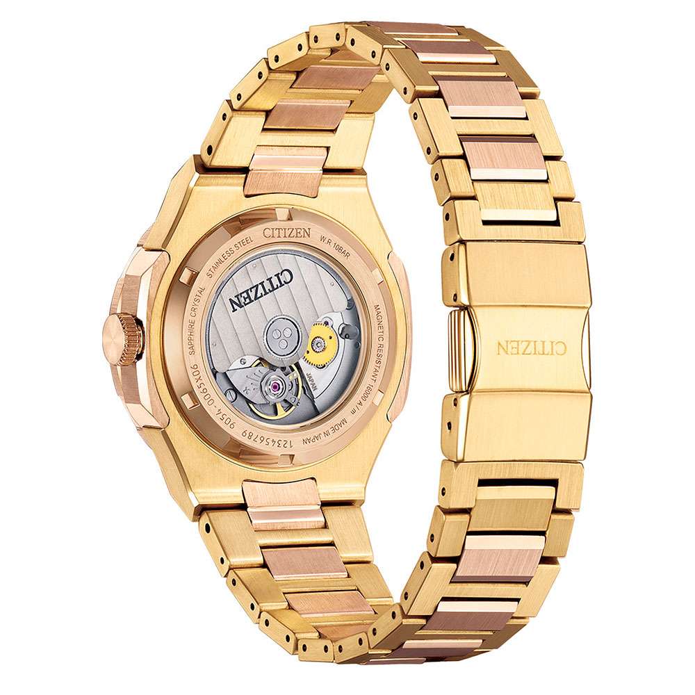 Citizen SERIES 8 NB6033-51E мужские часы спортивного дизайна с высоким уровнем водозащиты. Корпус из нержавеющей стали с IP-покрытиемIP-покрытиеМетод ионного напыления. Демонстрирует повышенную устойчивость к истиранию, окислению и химическим веществам. Под воздействием высокого давления и температуры около 1500°C молекулы металла надёжно соединяются с частицами корпуса часов. диаметром 41 мм идеально сбалансирован. Сапфировое стеклоСапфировое стеклоПрочный и надёжный материал из кристалла сапфира синтетического происхождения, характеризующийся особой твёрдостью и устойчивостью к царапинам и повреждениям. с антибликовым покрытием обеспечивает отличную защиту циферблата от царапин. Механические часы с автоподзаводом. Стальной браслет на раскладной застёжкеРаскладная застёжкаТакой тип застёжки используется только на браслетах из металла. Она никогда не раскрывается полностью, происходит разделение на 2 и более частей. Раскладывающая застёжка снизит вероятность потери часов к минимуму. идеально дополняют дизайн часов, обеспечивая комфортное ношение. Стрелки и метки на циферблате имеют люминесцентное покрытиеЛюминесцентное покрытиеПозволяет считывать показания времени в темноте. Производители наносят на стрелки, часовые индексы, безель или поверхность циферблата светонакопительный состав, дающий холодное свечение. позволяющее легко определять время даже в темноте. БезельБезельВнешний ободок, закрепляющий стекло. В спортивных часах так называется поворотное кольцо с делениями на циферблате, выполняет роль таймера – замеряет отрезки времени на шкале. Неподвижный безель – элемент декора. Однонаправленно вращающийся безель на дайверских часах позволяет фиксировать моменты погружения и выныривания на поверхность. с IP-покрытиемIP-покрытиеМетод ионного напыления. Демонстрирует повышенную устойчивость к истиранию, окислению и химическим веществам. Под воздействием высокого давления и температуры около 1500°C молекулы металла надёжно соединяются с частицами корпуса часов.. Окошко даты находится в положении 3 часа. Магнитоустойчивость 16000 а/м. Запас хода около 50 часов. Часы обладают впечатляющей водонепроницаемостью до 100WR, что делает их идеальными для повседневной носки. Прозрачная задняя крышка.