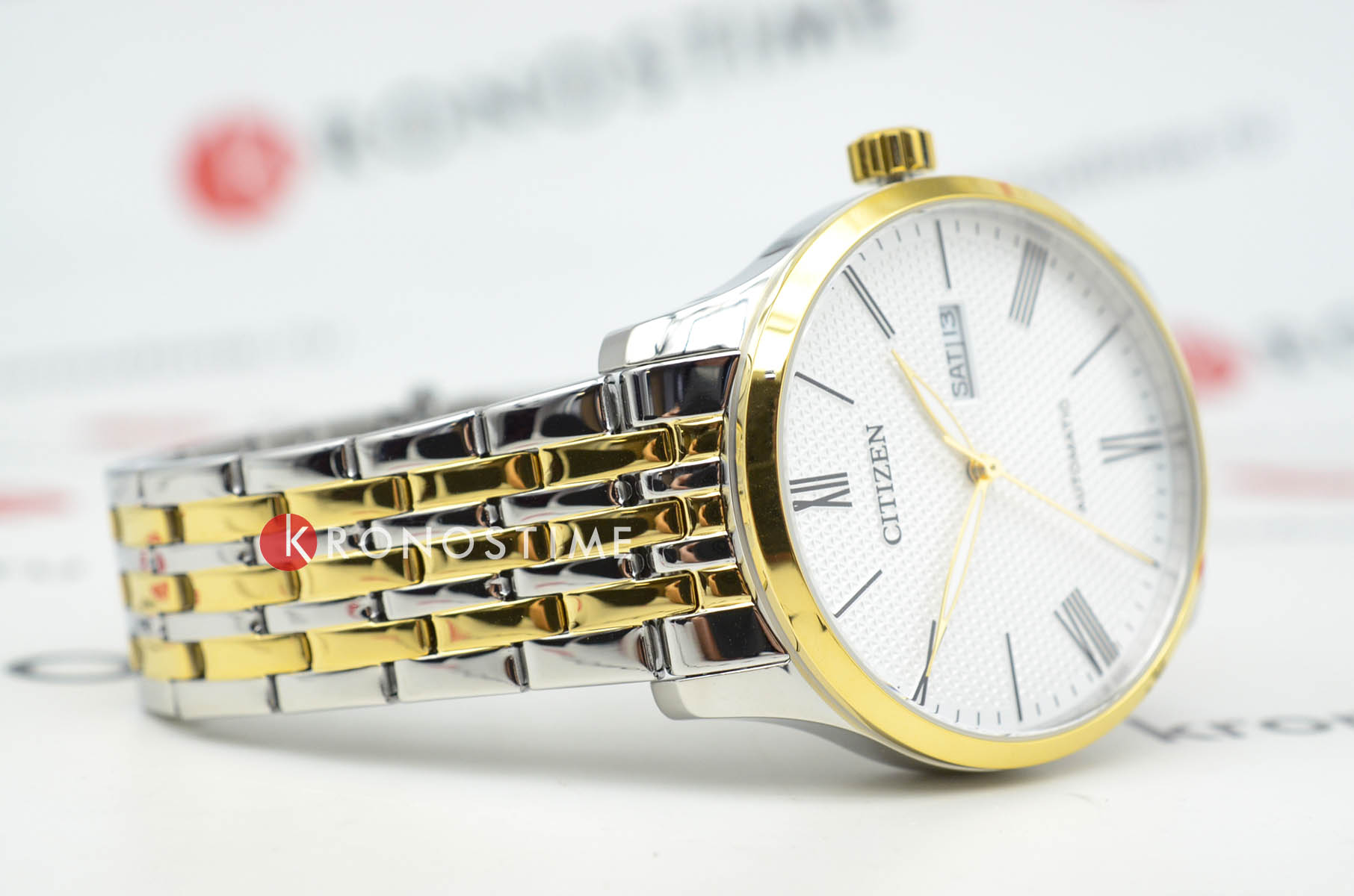 Мужские часы Citizen Tsuyosa NH8354-58A - идеальное сочетание классического и современного дизайна. Корпус из нержавеющей стали диаметром 40 мм идеально сбалансирован. Минеральное стеклоМинеральное стеклоМинеральное стекло представляет собой искусственно выращенный минерал кварца. Такое стекло отличается особой устойчивостью к повреждениям и царапинам. Уступает по некоторым качествам сапфировому стеклу. обеспечивает отличную защиту циферблата от царапин. Механические часы с автоподзаводом. Стальной браслет на раскладной застёжкеРаскладная застёжкаТакой тип застёжки используется только на браслетах из металла. Она никогда не раскрывается полностью, происходит разделение на 2 и более частей. Раскладывающая застёжка снизит вероятность потери часов к минимуму. с частичным IP-покрытиемIP-покрытиеМетод ионного напыления. Демонстрирует повышенную устойчивость к истиранию, окислению и химическим веществам. Под воздействием высокого давления и температуры около 1500°C молекулы металла надёжно соединяются с частицами корпуса часов. идеально дополняют дизайн часов, обеспечивая комфортное ношение. БезельБезельВнешний ободок, закрепляющий стекло. В спортивных часах так называется поворотное кольцо с делениями на циферблате, выполняет роль таймера – замеряет отрезки времени на шкале. Неподвижный безель – элемент декора. Однонаправленно вращающийся безель на дайверских часах позволяет фиксировать моменты погружения и выныривания на поверхность. с IP-покрытиемIP-покрытиеМетод ионного напыления. Демонстрирует повышенную устойчивость к истиранию, окислению и химическим веществам. Под воздействием высокого давления и температуры около 1500°C молекулы металла надёжно соединяются с частицами корпуса часов.. Окошко даты находится в положении 3 часа. В механизме 21 камень, частота 21600 полуколебаний в час. Часы обладают водонепроницаемостью до 50WR, что делает их идеальными для повседневной носки.