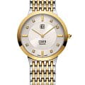 Элегантные женские швейцарские часы Cover Langham CO124.24 воплощают в себе безупречное качество и роскошный дизайн, идеально подходящий для современной женщины. В основе работы часов лежит надёжный кварцевый механизм с высокой точностью, который обеспечивает исключительную стабильность хода на протяжении длительного времени. Защиту циферблата обеспечивают премиальное сапфировое стеклоСапфировое стеклоПрочный и надёжный материал из кристалла сапфира синтетического происхождения, характеризующийся особой твёрдостью и устойчивостью к царапинам и повреждениям., устойчивое к мелким механическим повреждениям, таким как царапины или потёртости, сохраняя безупречный внешний вид изделия. Корпус часов выполнен из прочной нержавеющей стали премиального качества, гарантирующей долговечность и презентабельный внешний вид. Особого внимания заслуживает безельБезельВнешний ободок, закрепляющий стекло. В спортивных часах так называется поворотное кольцо с делениями на циферблате, выполняет роль таймера – замеряет отрезки времени на шкале. Неподвижный безель – элемент декора. Однонаправленно вращающийся безель на дайверских часах позволяет фиксировать моменты погружения и выныривания на поверхность. с изысканным PVD-покрытиемPVDУльтратонкое покрытие наносится в технике вакуумного напыления, сочетает в себе нитрид титана особой прочности со слоем золота или оксида хрома. Несёт в себе декоративную или защитную функцию., которое добавляет модели благородства и защищает поверхность от окисления и повреждений. Циферблат украшен великолепными кристаллами, придающими часам особую элегантность и шарм, делая их идеальным аксессуаром для создания стильных образов. Модель обладает классом водозащиты 30 метров, что позволяет защитить корпус от случайных брызг воды или капель дождя, обеспечивая комфортное использование в повседневной жизни. Браслет изготовлен из высококачественной нержавеющей стали с частичным PVD-покрытиемPVDУльтратонкое покрытие наносится в технике вакуумного напыления, сочетает в себе нитрид титана особой прочности со слоем золота или оксида хрома. Несёт в себе декоративную или защитную функцию., гармонично сочетающим глянцевые и матовые элементы, что создаёт эффект контраста и добавляет изделию современности. Застёжка выполнена в виде удобной застёжки «бабочка»Застёжка "бабочка"Такой вид застёжки дополняется предохранителями, помогающими избежать случайного раскрытия браслета. Обладают изящным исполнением. , обеспечивающей максимальный комфорт при ношении и простоту использования.