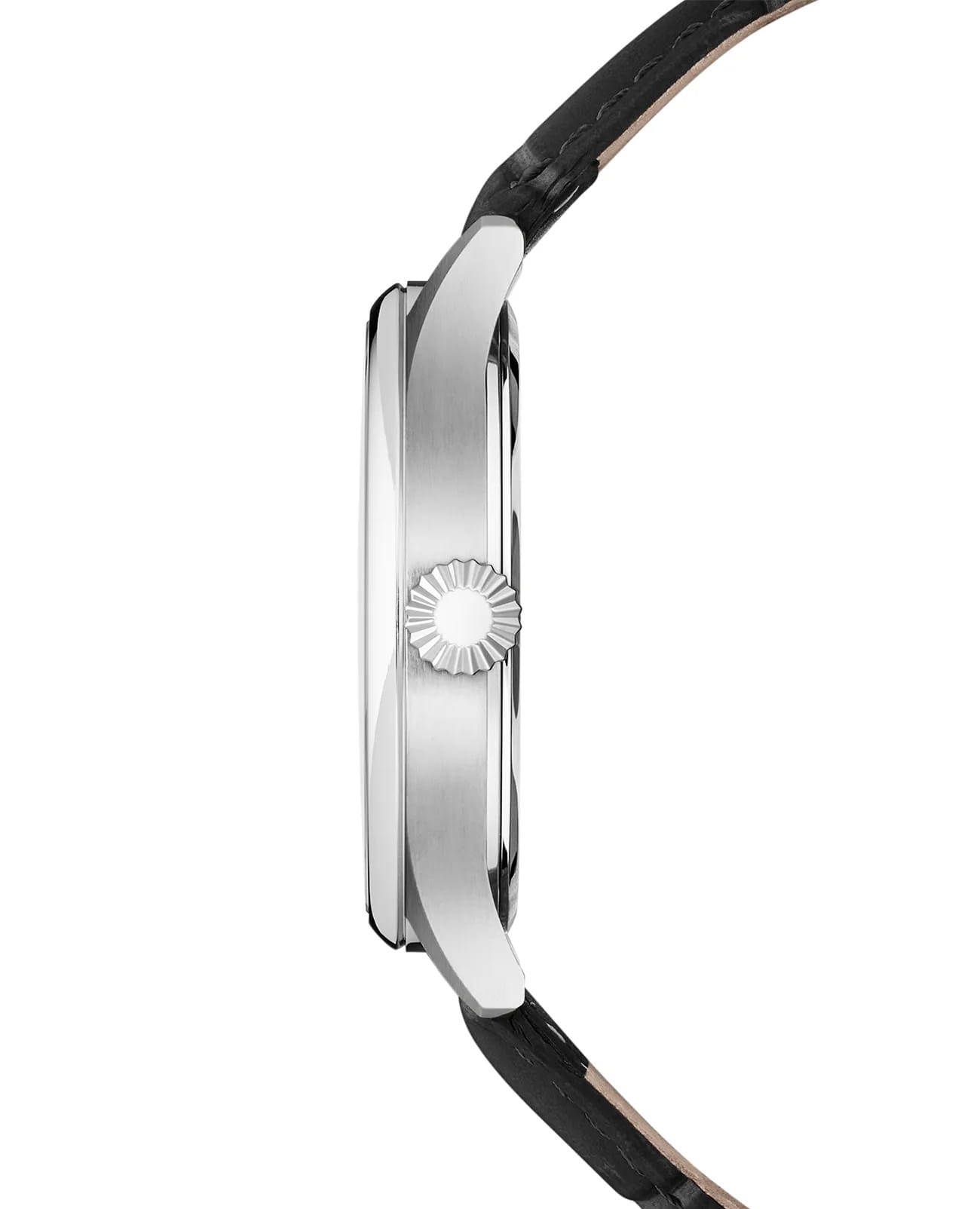 Мужские наручные часы Cover CO202.04 из коллекции Chapman Moon&Stars Gent сочетают в себе классический дизайн и надежность современных технологий. Модель обладает круглым корпусом диаметром 41 мм, изготовленным из нержавеющей стали, что обеспечивает высокую устойчивость к внешним воздействиям. Браслет выполнен из кожи, гарантирующей комфортное ношение. Серый циферблат с узором Sunray оснащен окном даты на «3 часах» и индикатором фаз Луны. Для защиты используется минеральное стеклоМинеральное стеклоМинеральное стекло представляет собой искусственно выращенный минерал кварца. Такое стекло отличается особой устойчивостью к повреждениям и царапинам. Уступает по некоторым качествам сапфировому стеклу., обеспечивающее прочную защиту от царапин. Часы работают на кварцевом механизме, что гарантирует точное время без необходимости подзаводки. Модель также обладает водонепроницаемостью до 5 атмосфер (50 метров), что позволяет использовать их во время плавания без ныряния.